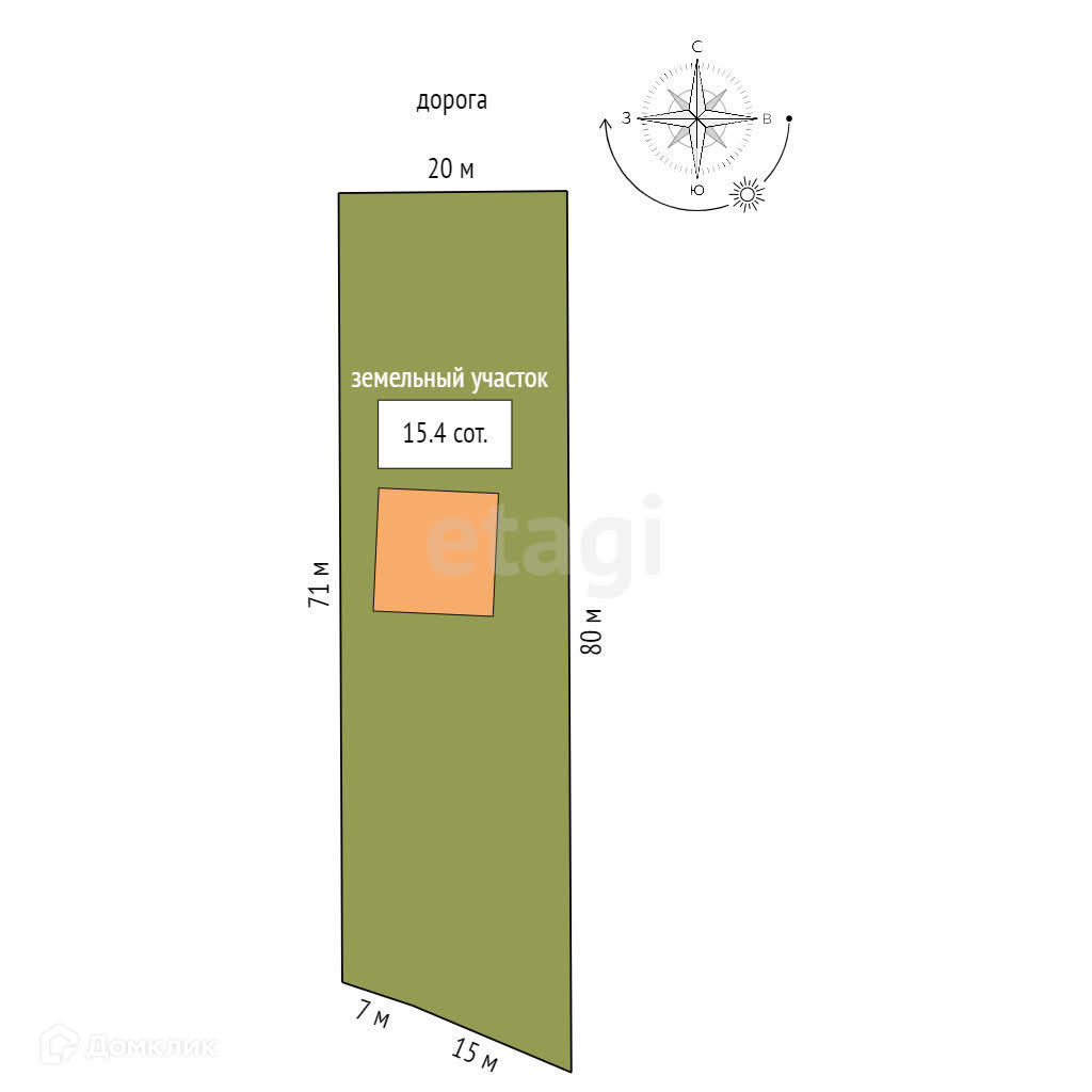УЧАСТКОК правильной прямоугольной формы, площадью 15,4 сот. Удобный заезд с центральной улицы. Огорожен забором из профнастила и оборудован калиткой, распашными воротами. Заезд отсыпан щебнем.