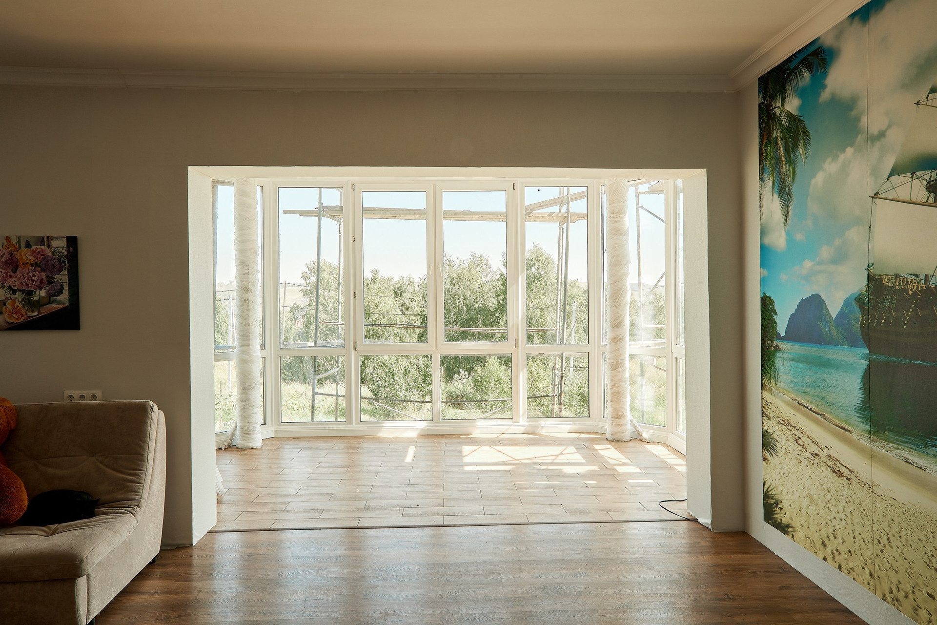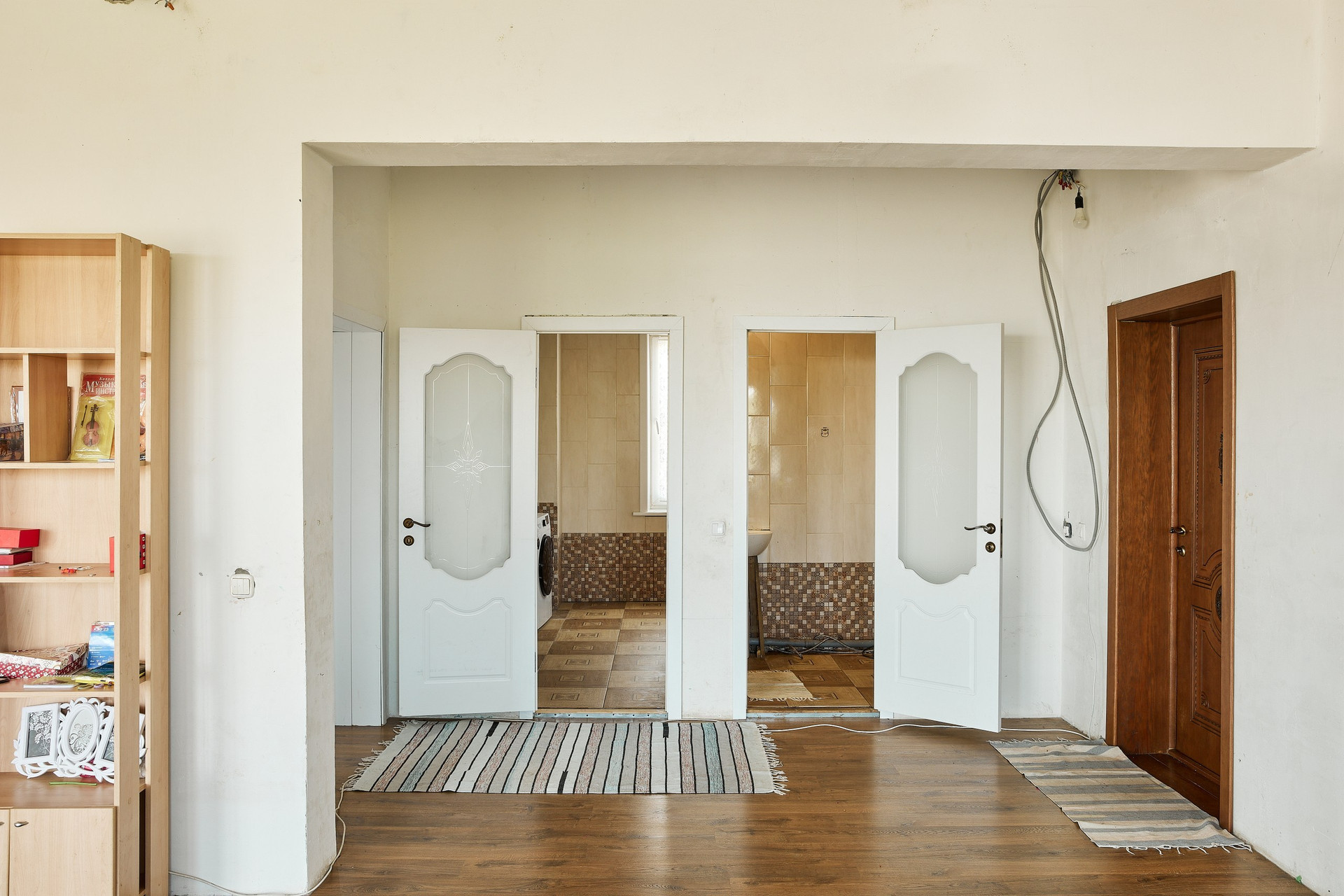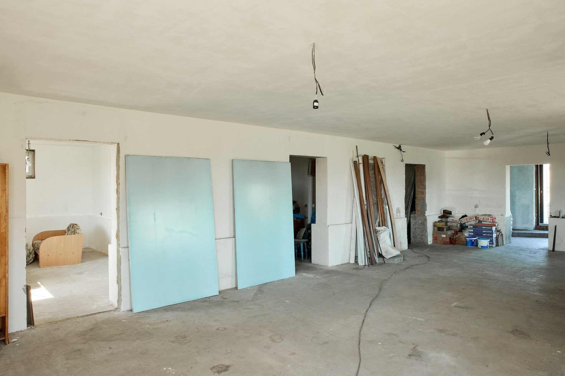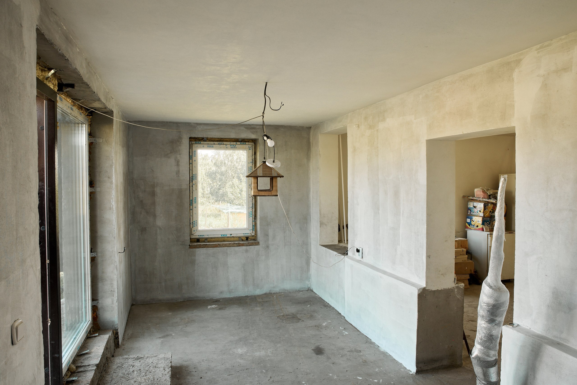 Фасад дома подготовлен под покраску или фасадную штукатурку (материал остается, есть возможность выбрать колер).