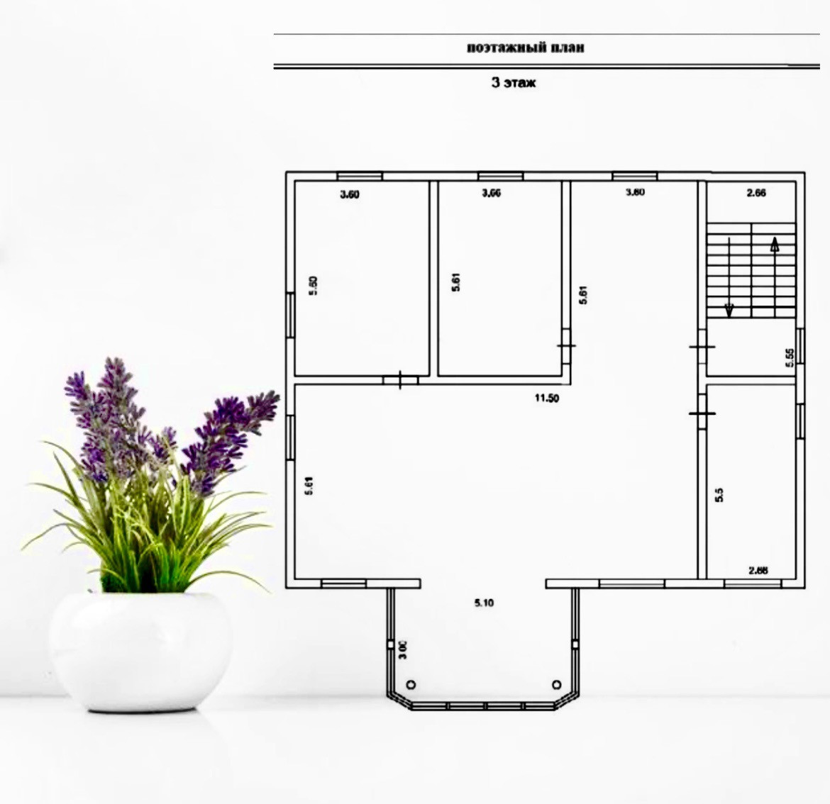Общая площадь дома составляет 660 кв.м., из них 498,5 кв.м. - жилая площадь и 162 кв.м. - мансарда (под остекление), 12 комнат.