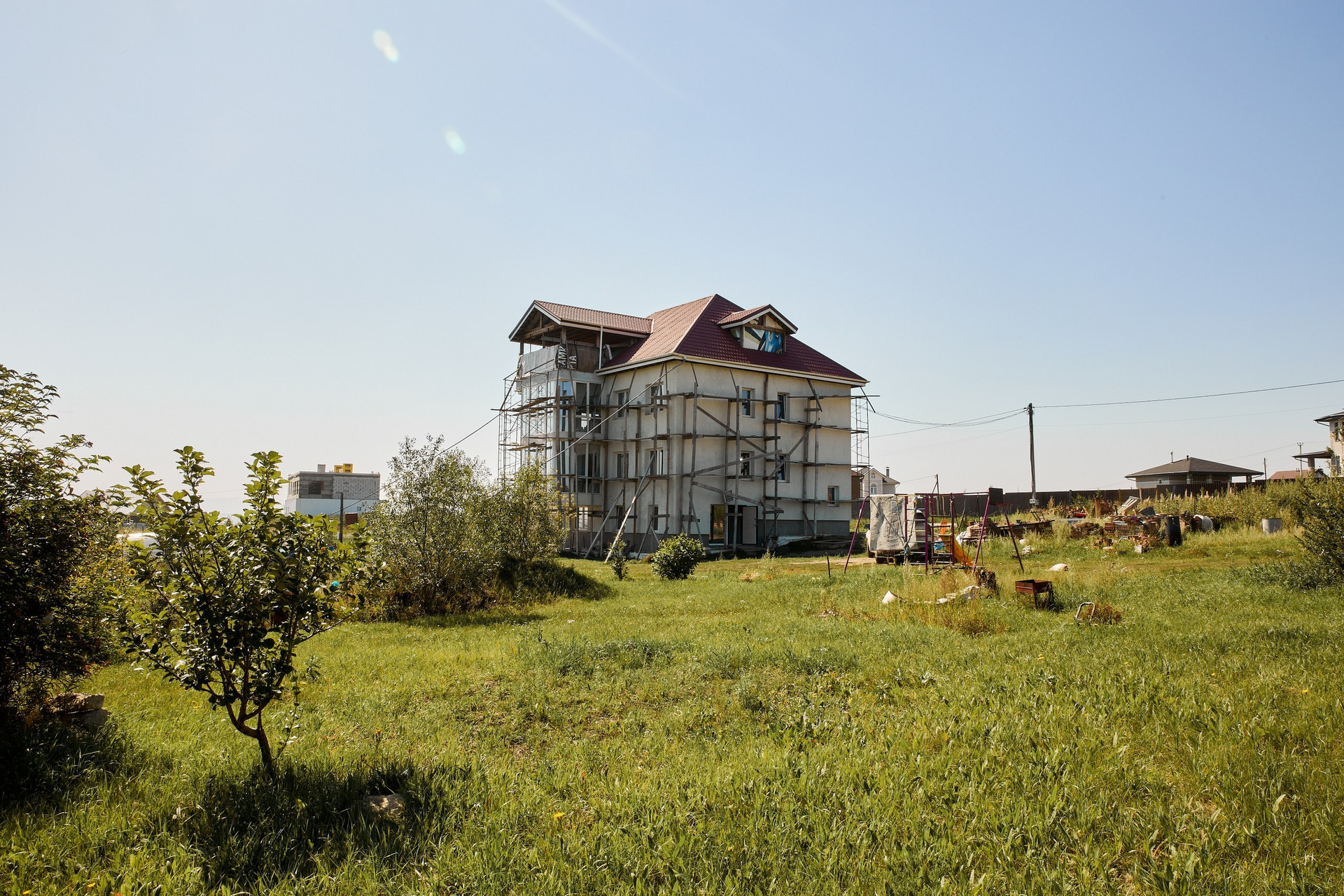 Отделка внутри дома: 1 этаж предчистовая, 2 этаж чистовая, 3 этаж черновая, 4 мансардный под остекление.