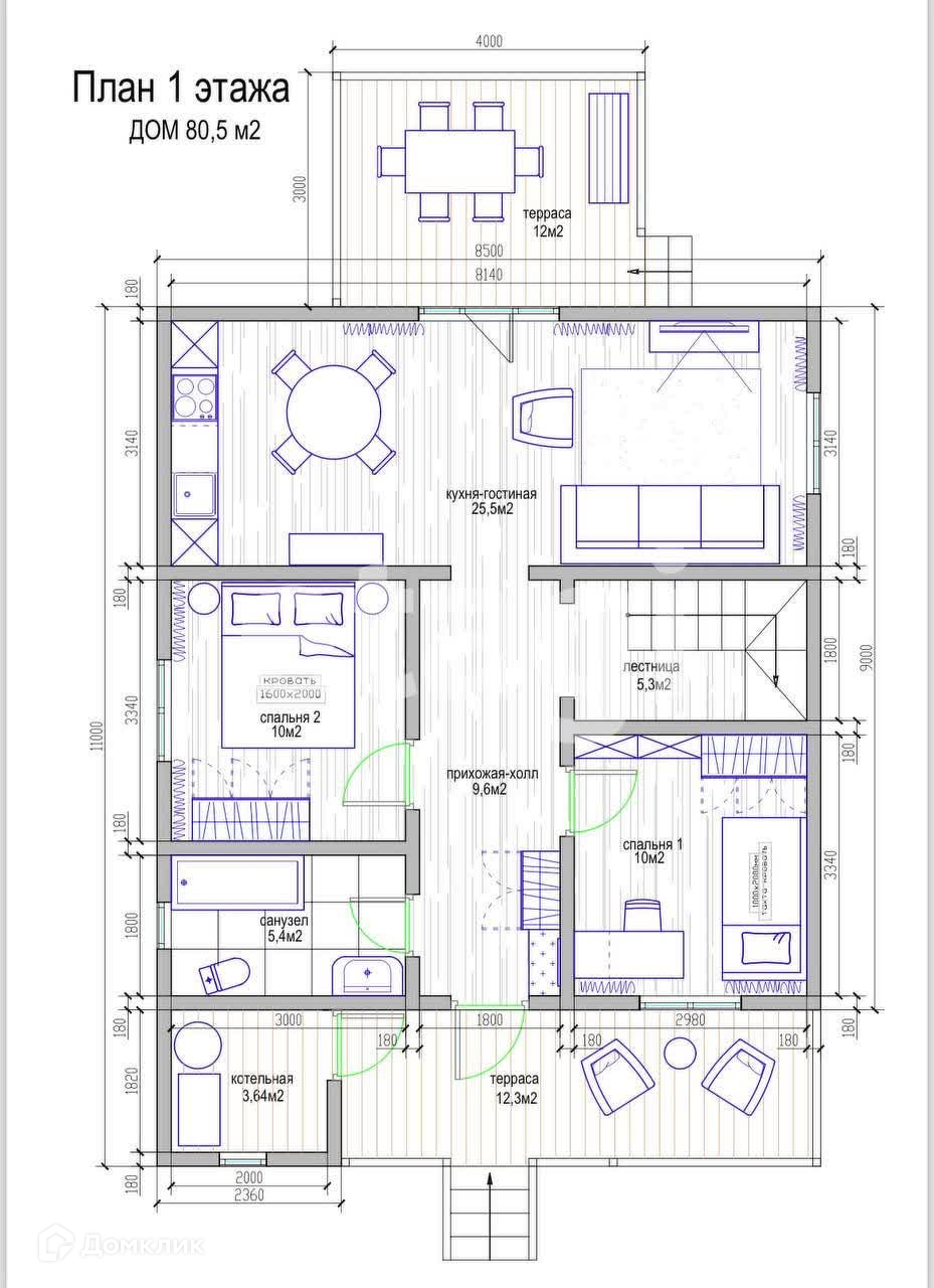80.5 и 85 - внутренняя площадь дома, без учета веранды и террасы.