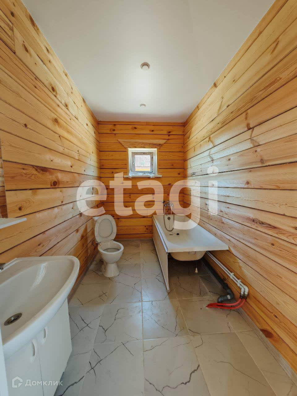 Ванна и сан. узел в кафеле, установлены ванная, раковина, унитаз.