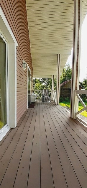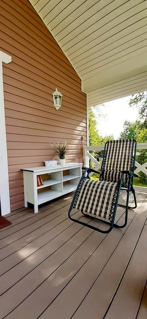 Выход на просторную террасу через пластиковые панорамные двери из гостиной.
