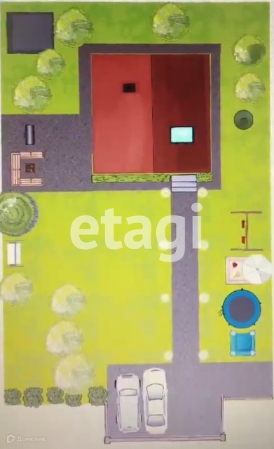 На участке растут березы, ели, посажена клубника, малина, смородина, жимолость, крыжовник, гортензии, яблоня, белая сирень, горная сосна, можжевельник и другие растения.