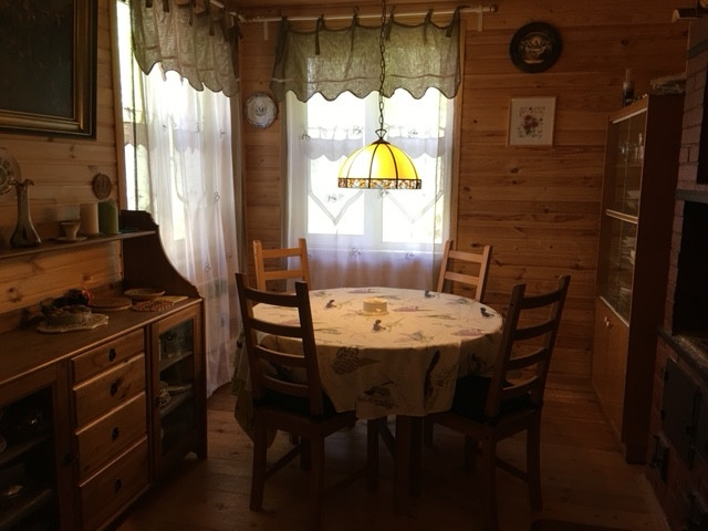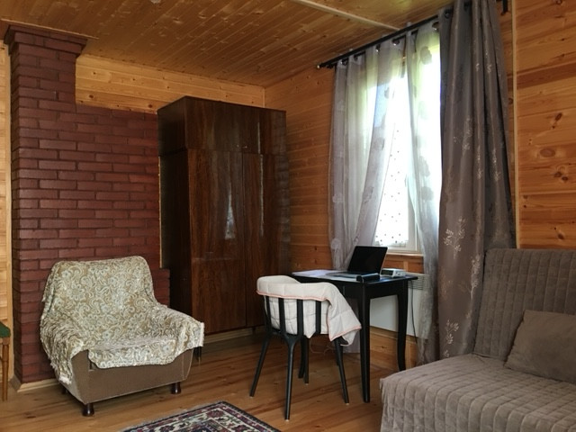 Дом 2х этажный (1 этаж+мансарда), 1996 года постройки, общей площадью 62,3 кв. м. Материал постройки комбинированный: кирпич (блоки)-щит, брус (бревно), щит, крыша-шифер. Произведена внутренняя отделка дома. В доме 3 комнаты 21,2+10,2+9,3 м, кухня-11,2 м, терраса 7,6 м. Электричество, водоснабжение (установлен насос, фильтр очистки воды, бойлер), туалет, душ в доме, отопление печное и электрическое, система теплый пол. Установлена система безопасности-охранно-пожарная сигнализация.