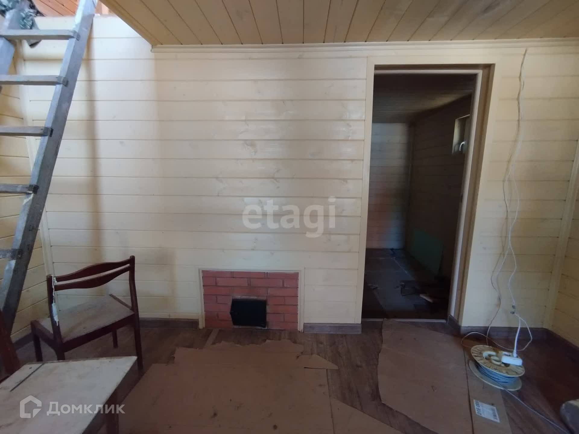 - Второй дом — новый, 2023 года постройки, из бруса на ленточном фундаменте. Двухэтажный, с продуманной планировкой и местом для бани, где уже установлена печь.