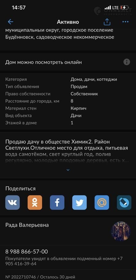 Цена на дачу заменилась в связи с продажей кирпича. Теперь, без кирпича она стоит 160000.Продаю дачу в обществе Химик2. Район Светлухи.Отличное место для отдыха, питьевая вода самотёком, свет круглый год, полив регулярно, молодые плодовые деревья, есть хоз постройки огорожена. Дачи охраняются, соседи хорошие. Выхода к старице нет, но в двадцати метрах место для купания. Об окончательной цене буду разговаривать с  реальным покупателем. Звоните,все подробности обсудим. Номер моего телефона для связи почему-то изменяют  админы в этом объявлении на не существующий. На последнем фото я сделала скриншот страницы с оригинальным и подменным номером, чтобы было понятно.. Вроде админы пропустили.Заходите в мой профиль и там , в других объявлениях увидите настоящий номер для связи.