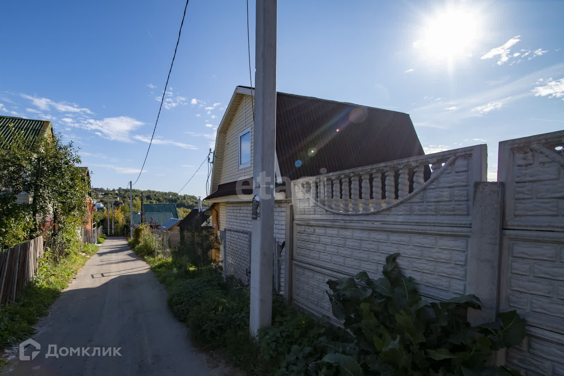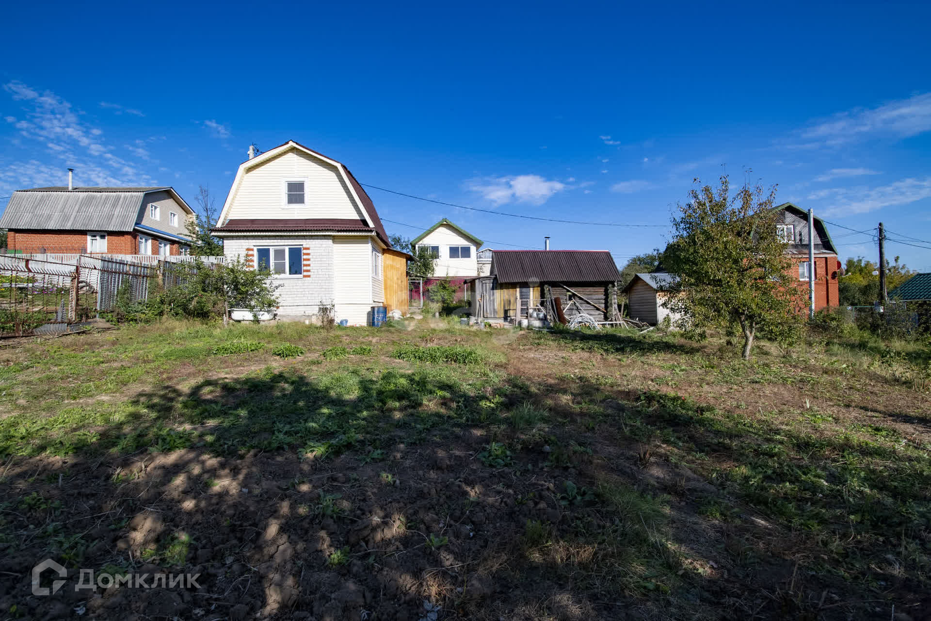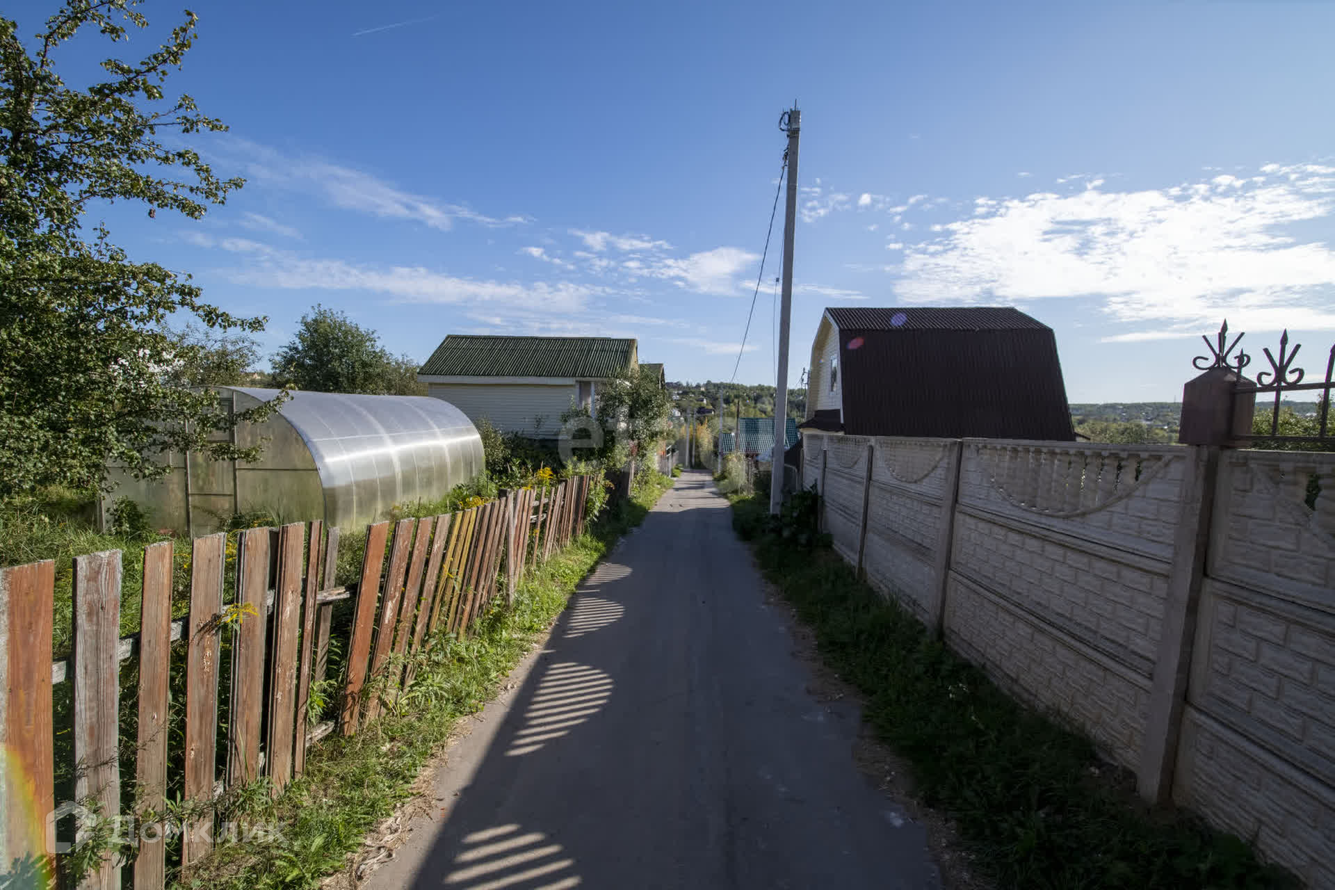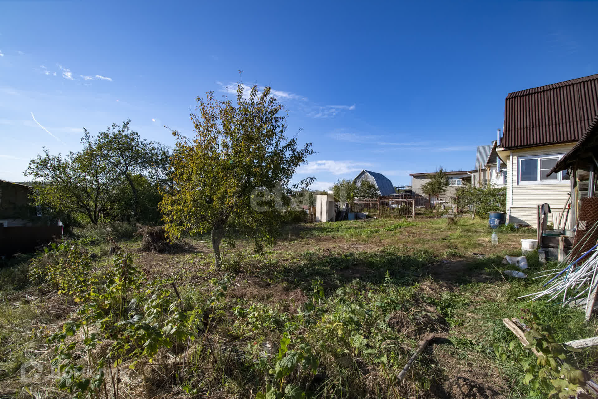 Есть баня, хоз постройка, вода в летний период , электричество, газ по границе участка. В садоводстве много домов в которых живут круглогодично, так же много строятся и получают прописку, дорога асфальт зимой дороги чистят, ночью освещение, видеонаблюдение, , рядом пруд с рыбой. Рядом д. Афонино, д. Никульское, Анкудиновка, Ржавка, д.Утечино, Ельня, Ждановский.