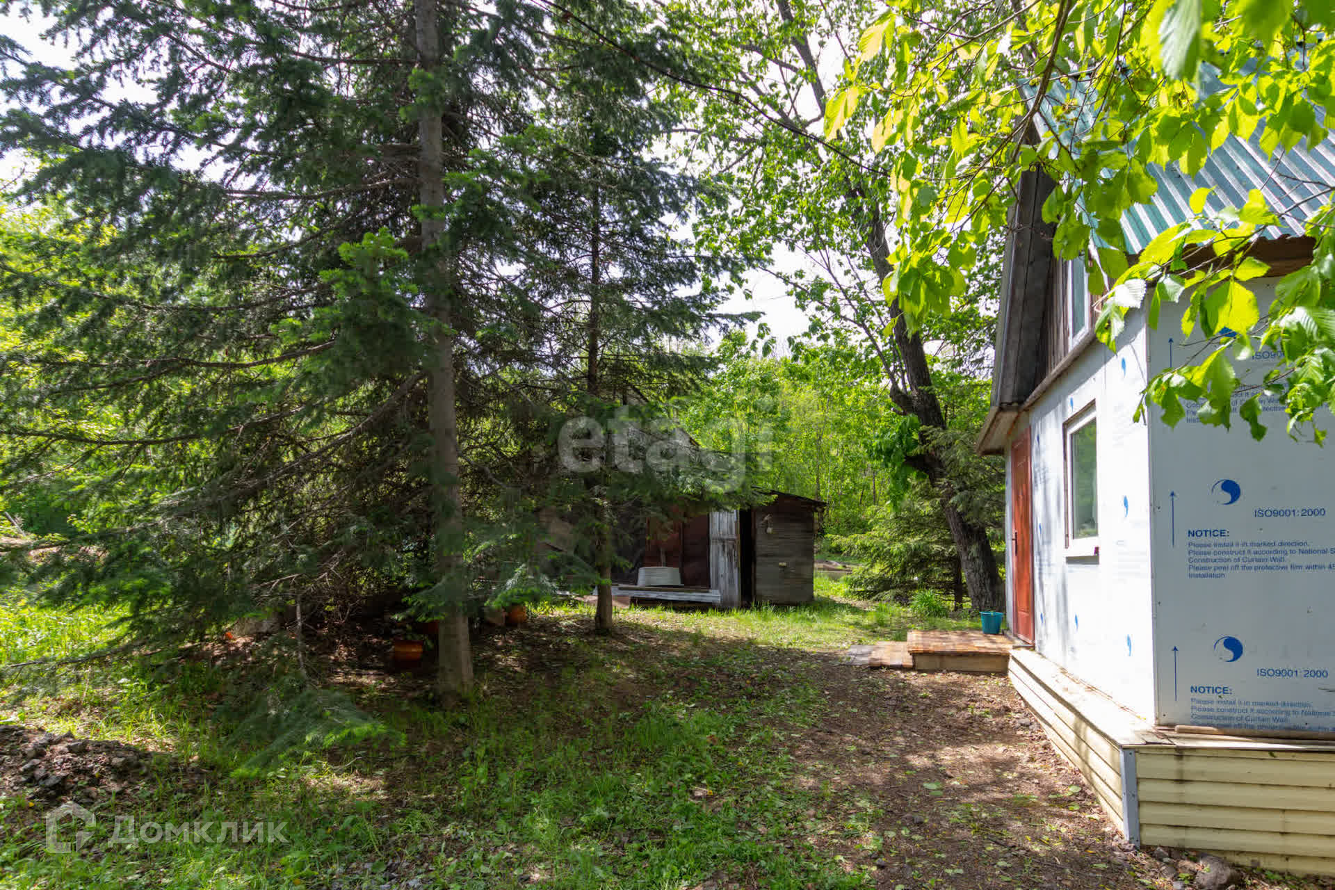 На участке имеются плодовые деревья и кустарники: жимолость, крыжовник, ежевика, абрикос, слива, груша, дальневосточный виноград, вишня, ирга.