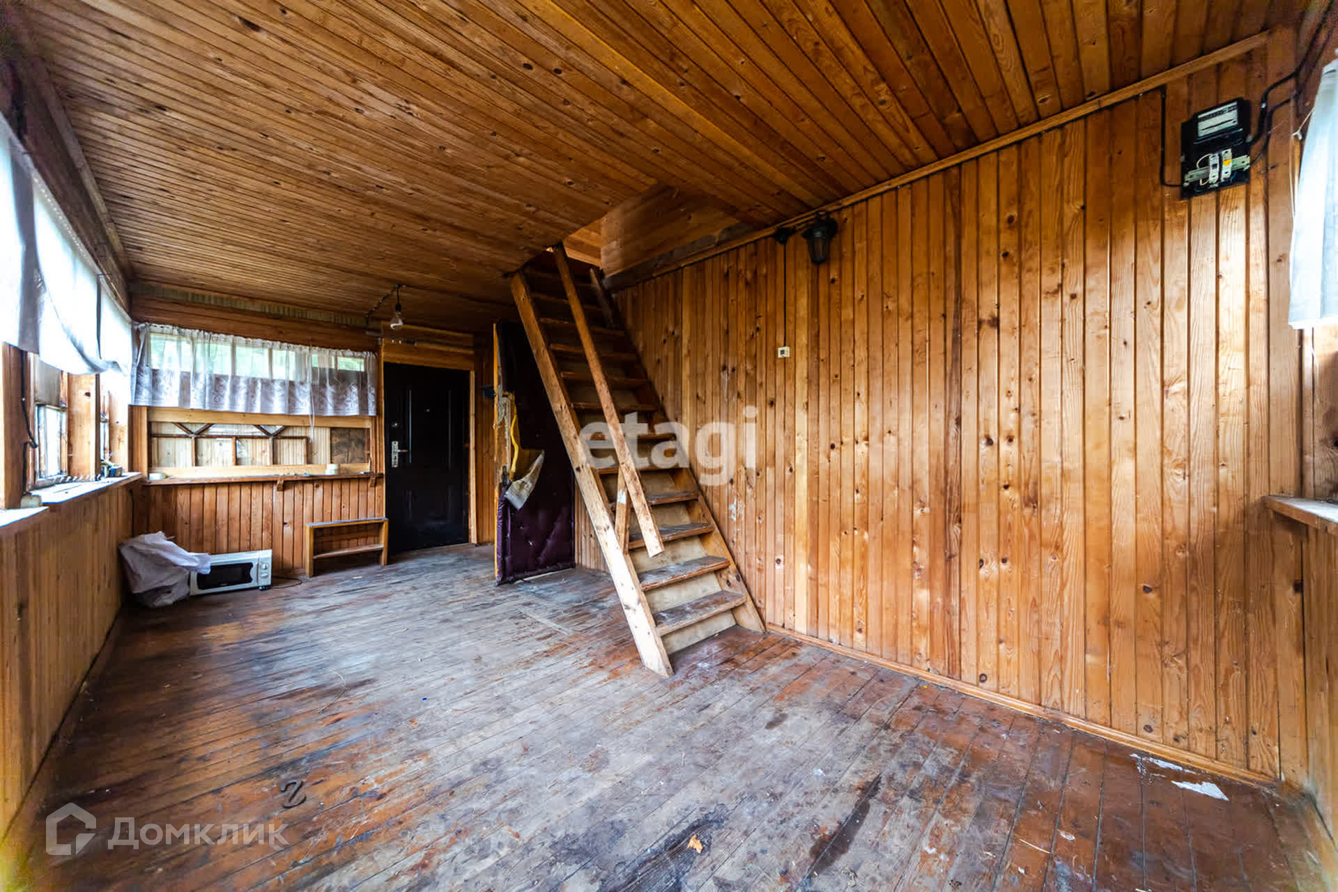 Первый этаж : Кухня-гостиная, спальня и летняя веранда, второй этаж - отдельная большая комната.