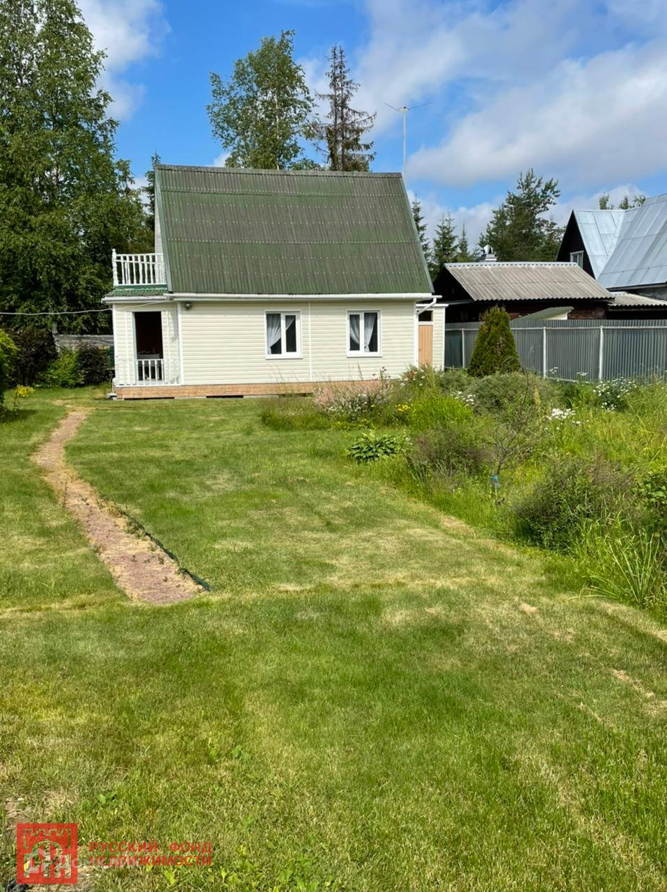 №309182 Продается участок с домом в СНТ Корунд, от Рощино 5 км. Также можно добраться на электричке до 63 км или Горьковское дальше пешком от 30 до 40 минут ходьбы до участка. Также ходит такси от железнодорожной станции. На машине по Скандинавии по 3-х полосной дороге. Дом бревенчатый обшит сайдингом, летний водопровод, в доме есть водонагреватель, вода подведена в дом, железная дверь, забор рабица со стороны соседей. Откатные ворота. В доме на первом этаже хорошая баня и гостиная,на втором этаже просторная комната. На участке хозпостройки, туалет. Второй этаж дома  обогревается электрическими батареями. На участке имеются насаждения, газон. Подходит под ипотеку.