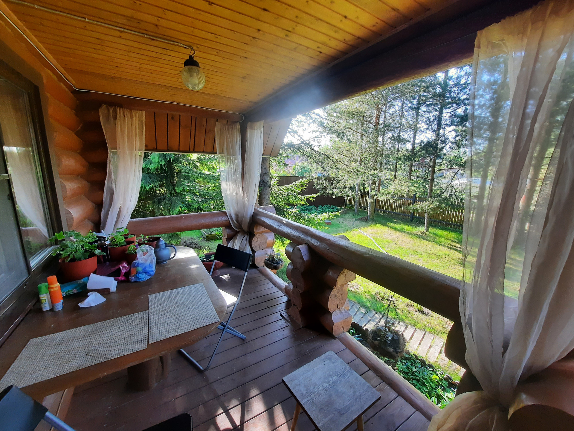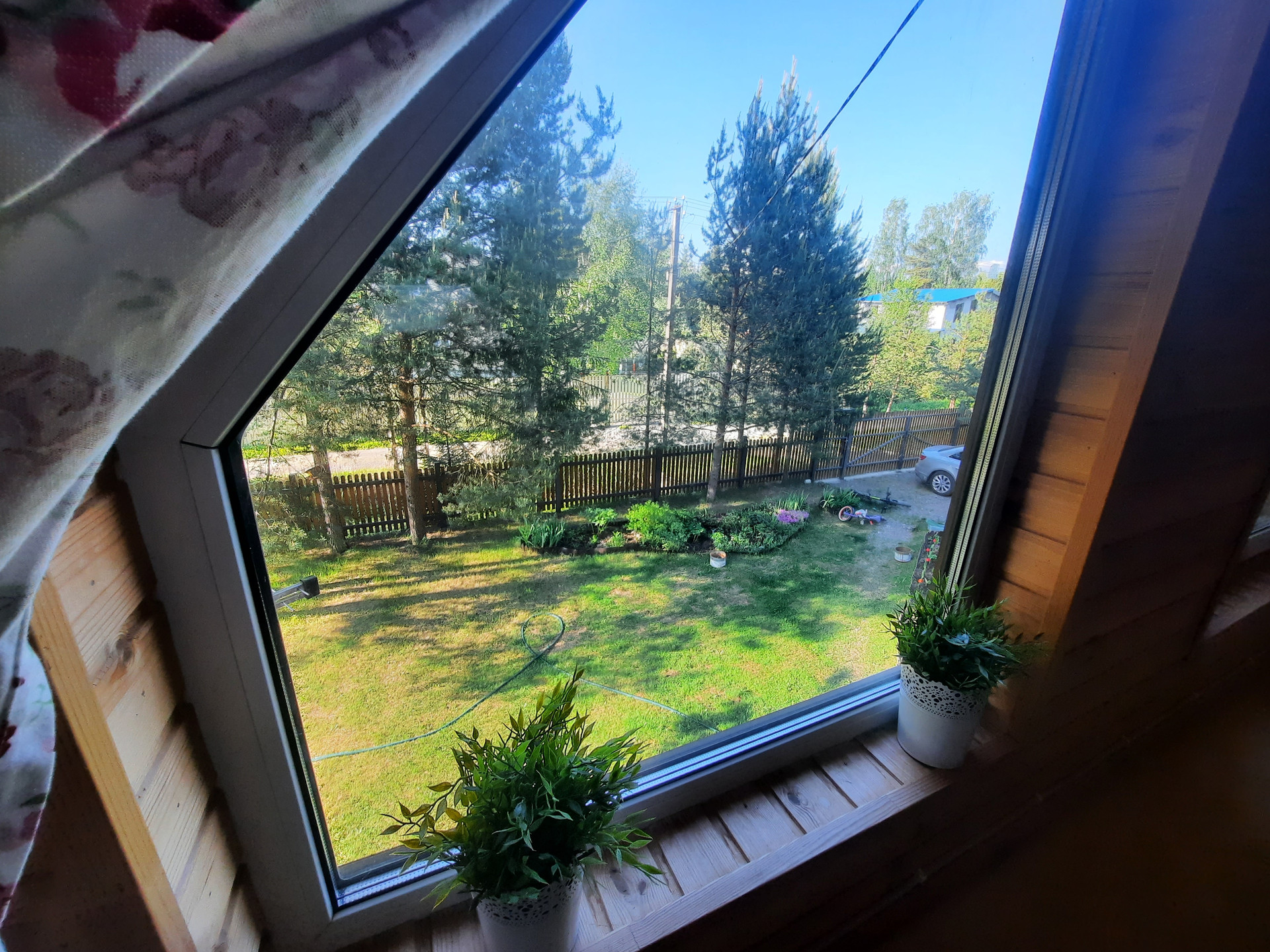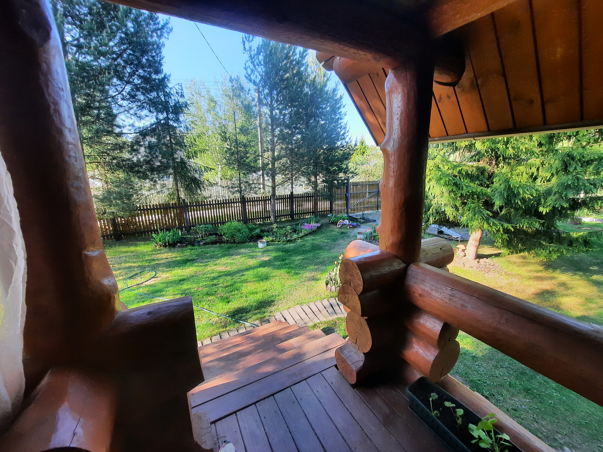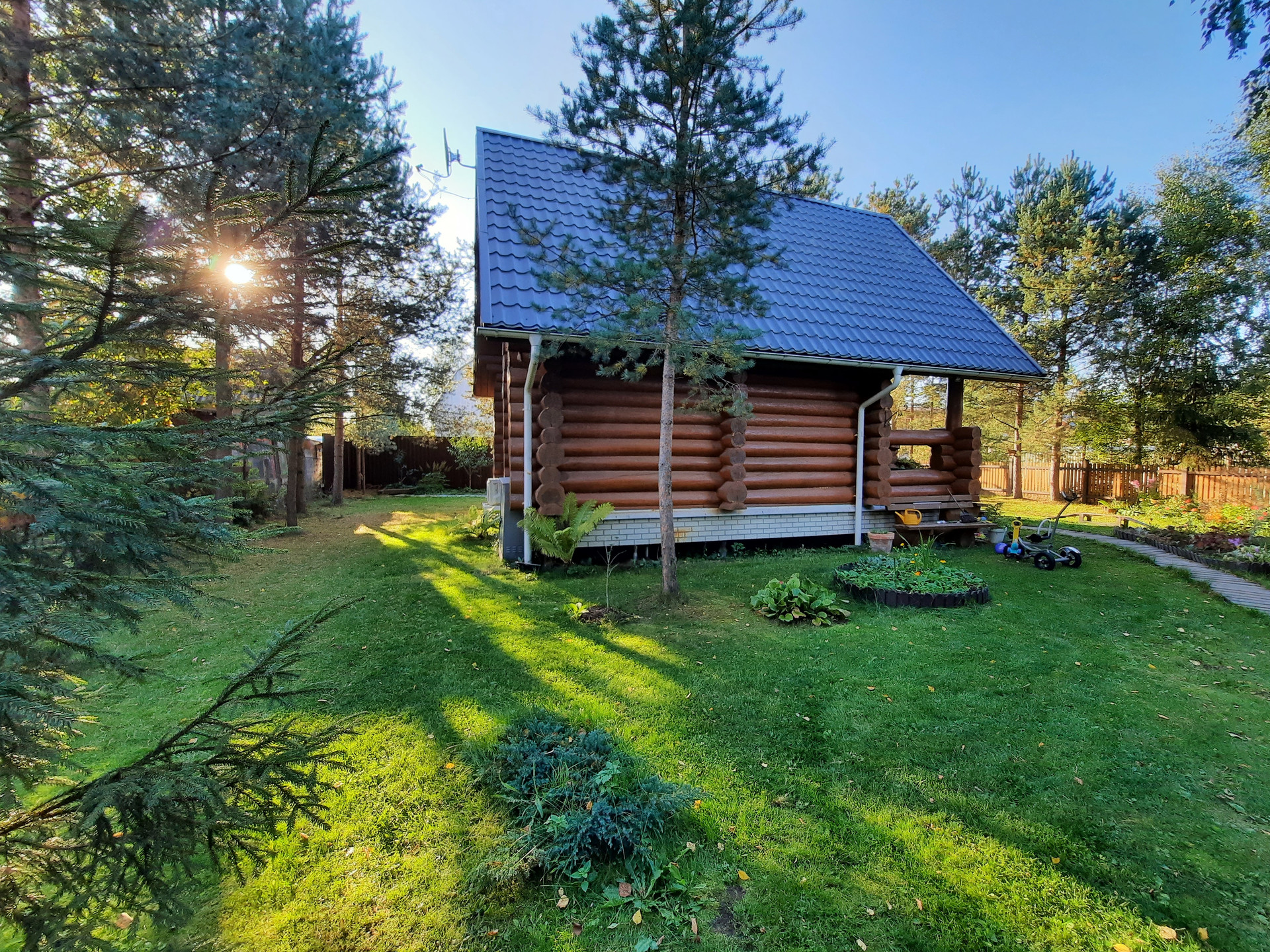 Участок: отличное сочетание настоящей лесной природы и цветущего сада. На участке более 30 взрослых деревьев,  высажены кустарники, клумбы, устроен газон с парковкой.