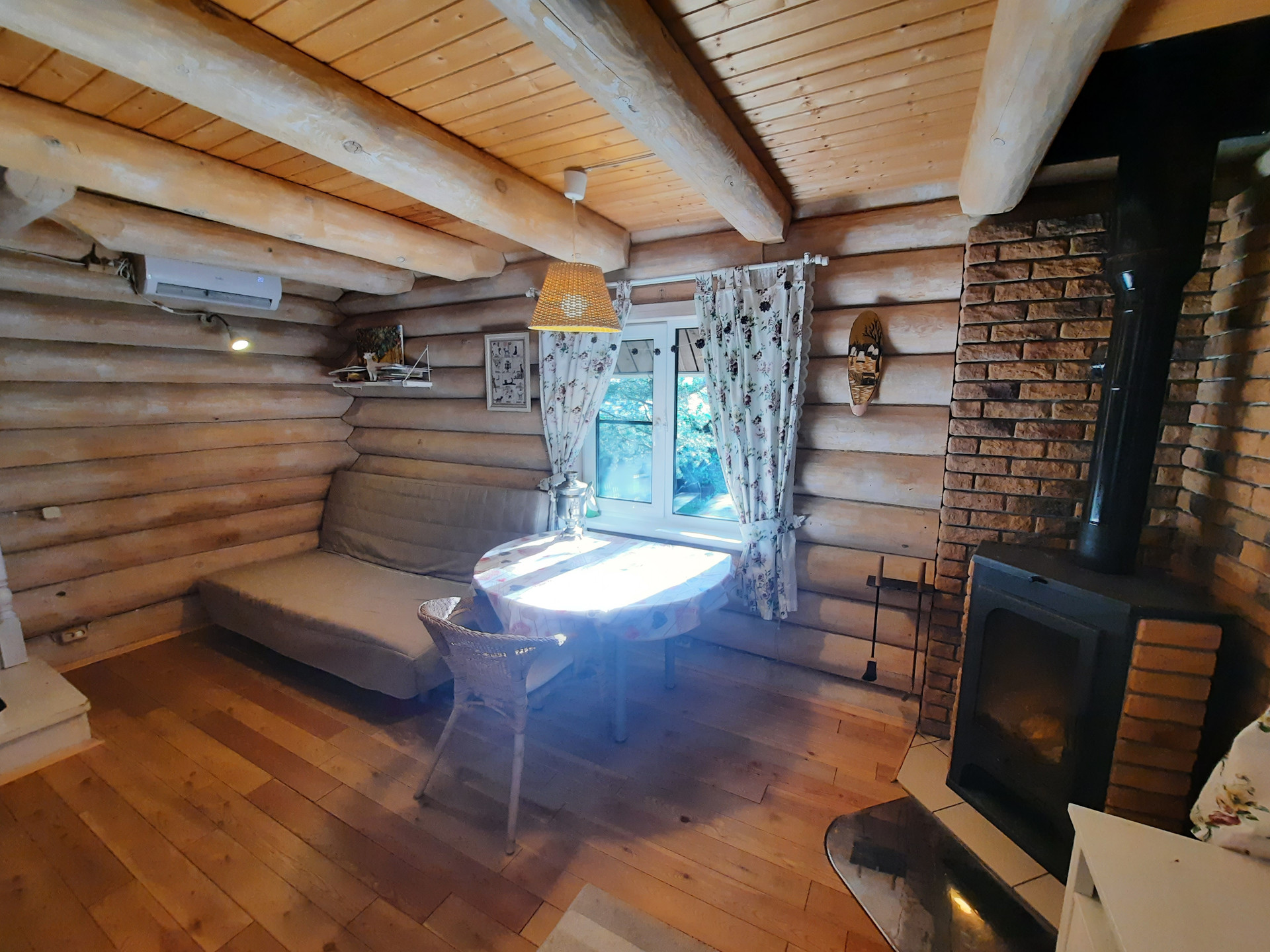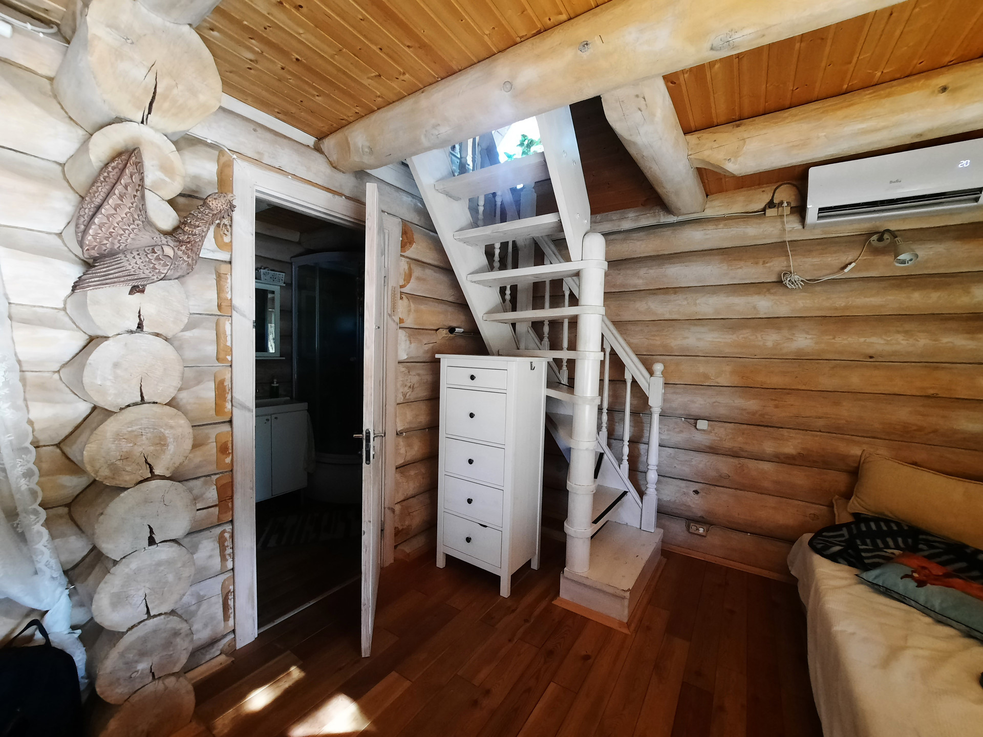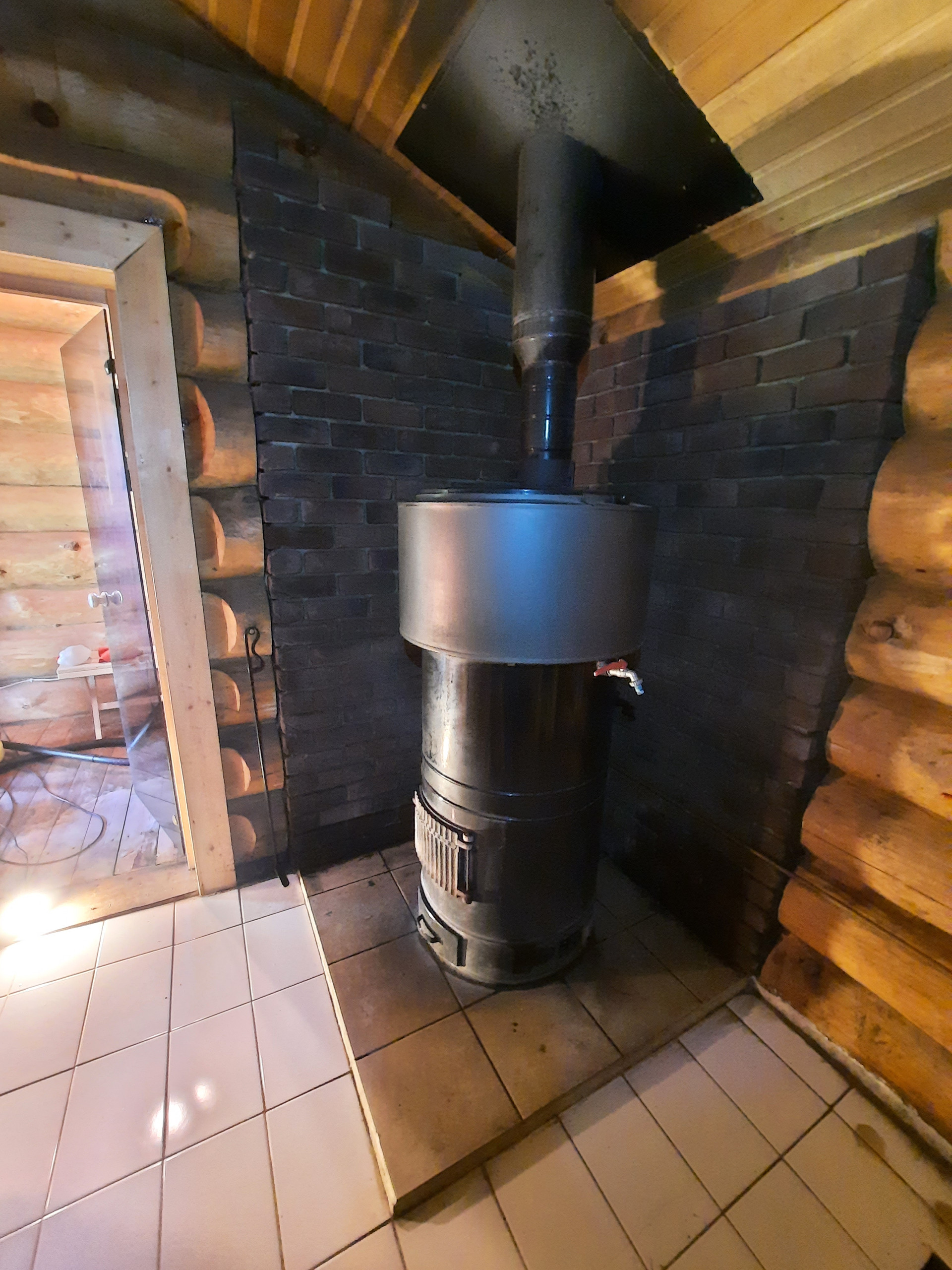 Русская баня топ-уровня: стены из бревна ручной рубки до 50 см. Установлена финская печь прямой топки Aito AK-57 – Mercedes-AMG в мире печей для русской бани: дрова напрямую нагревают камни докрасна, что дает легкий, мелкодисперсный пар. Просторная парилка высотой до 3.5 метра.