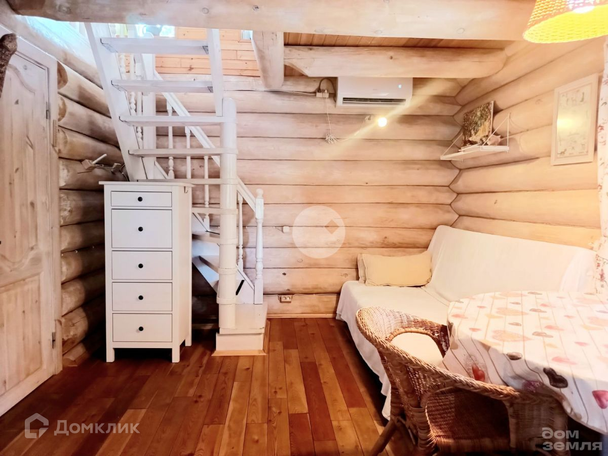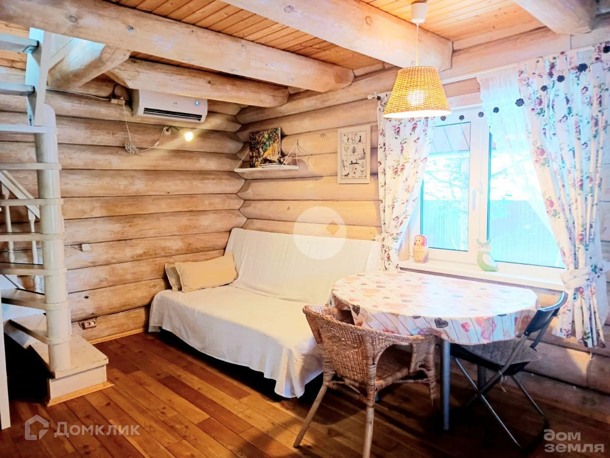 Зимний дом из бревна ручной рубки 2013 года постройки. Фундамент - свайно-винтовой, крыша - финская металлочерепица. Внешние размеры дома: 6 на 6 метра. На окнах установлены стеклопакеты.