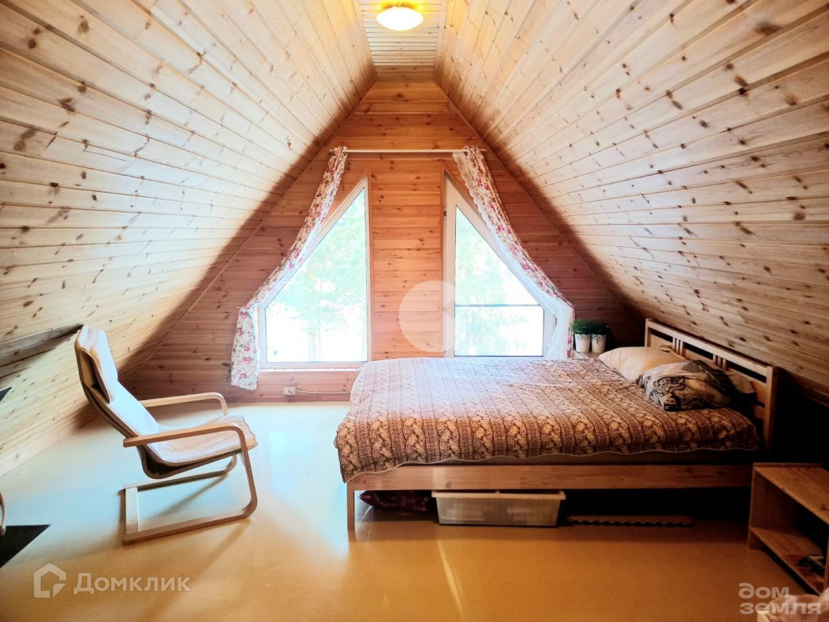 Планировка: на первом этаже расположились уютная кухня-гостиная, санузел и терраса. На втором этаже небольшой коридор и спальня с окнами в пол, откуда открывается прекрасный вид на участок с красивейшими соснами.
