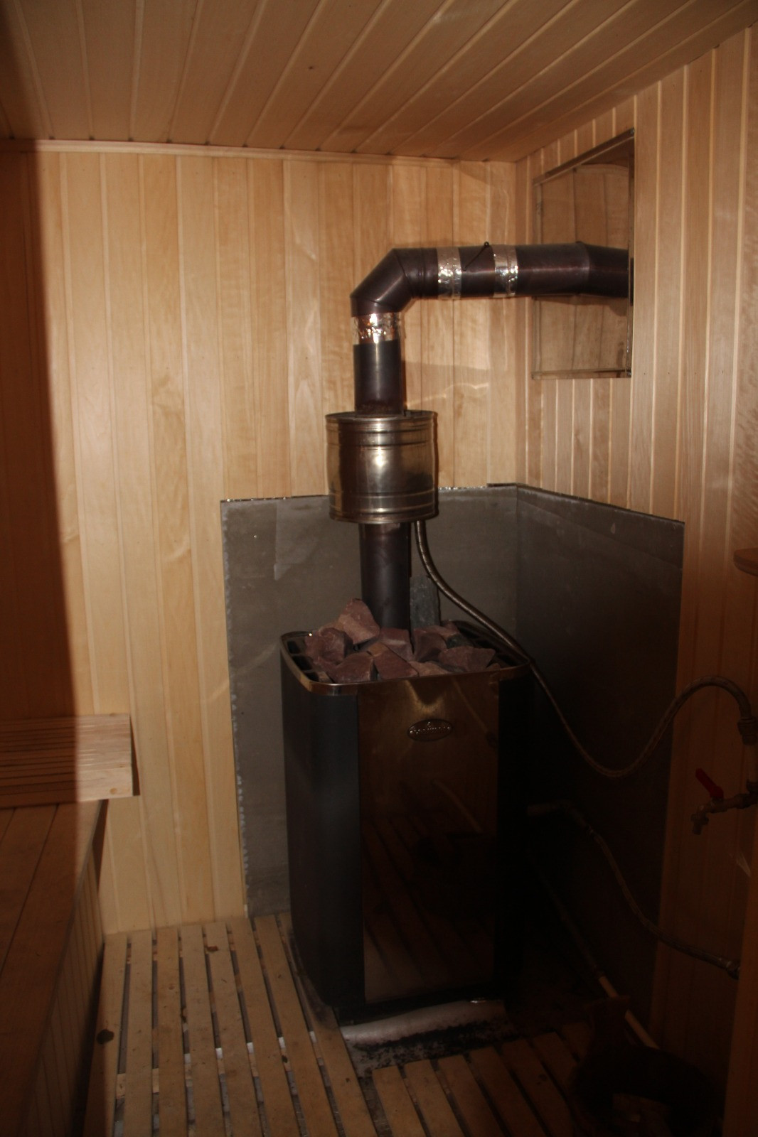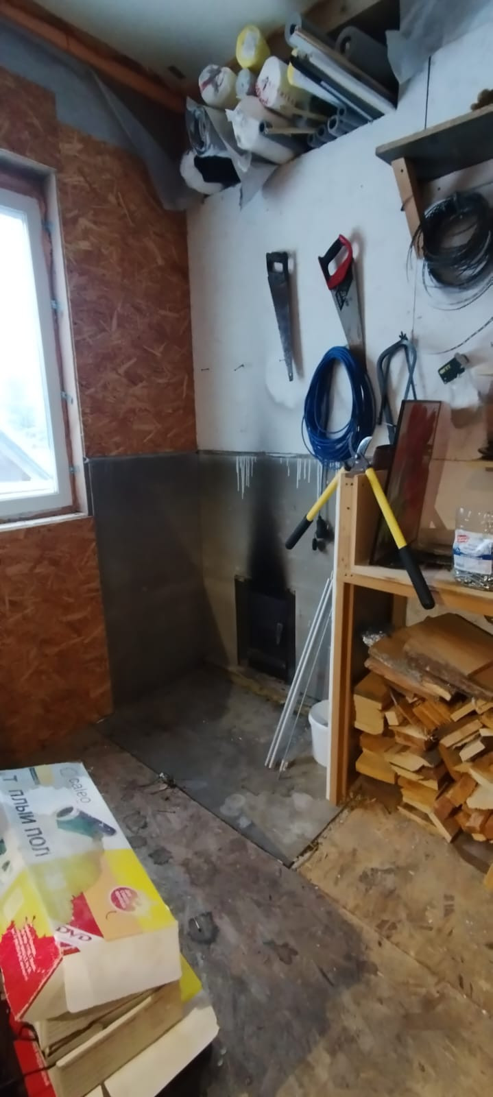 На первом этаже мастерская, прихожая, сауна, туалет, душевая, кухея-гостинная со сторым светом.