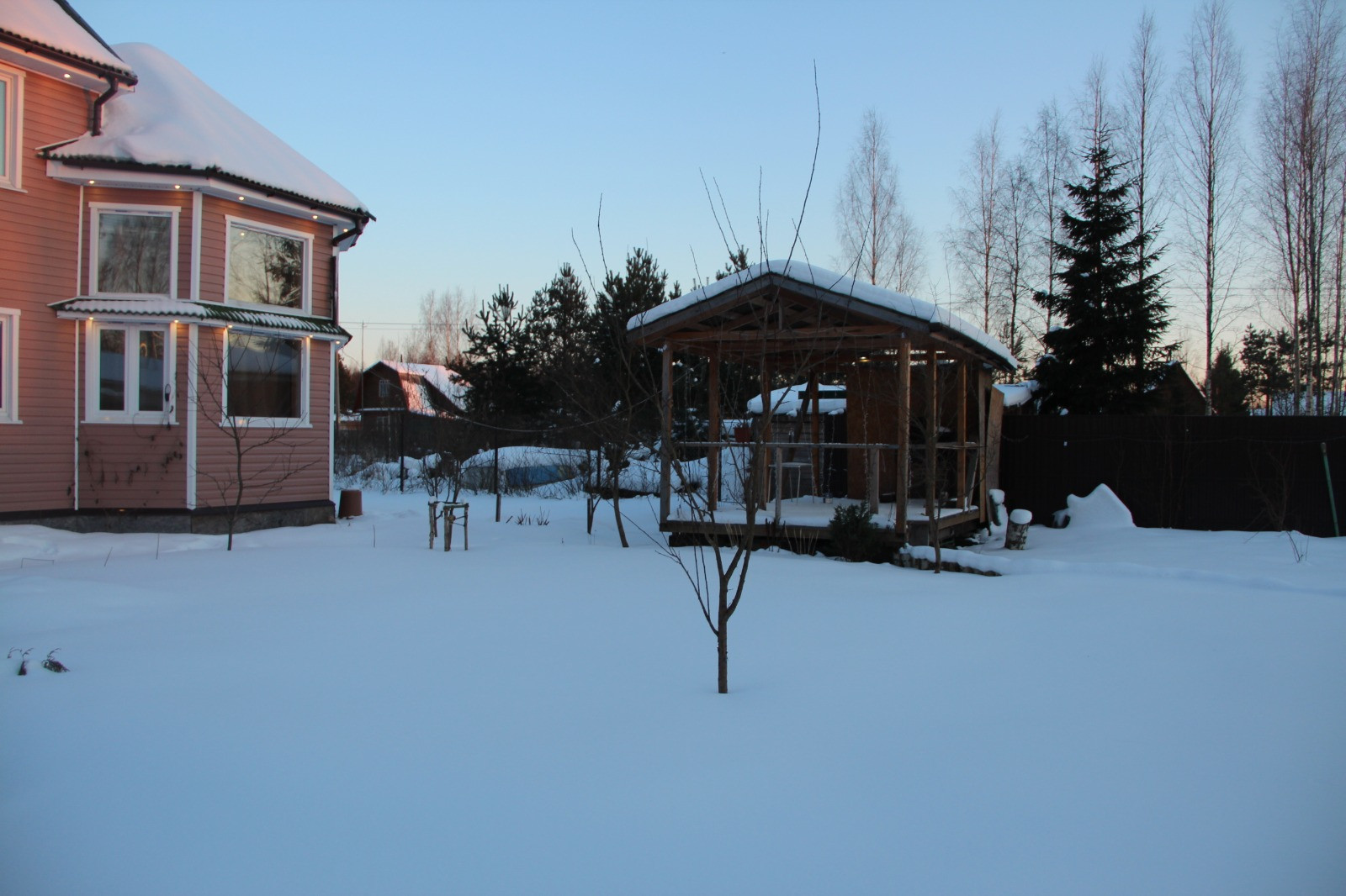 На участке детская площадка(детский домик, каркасный бассейн, )