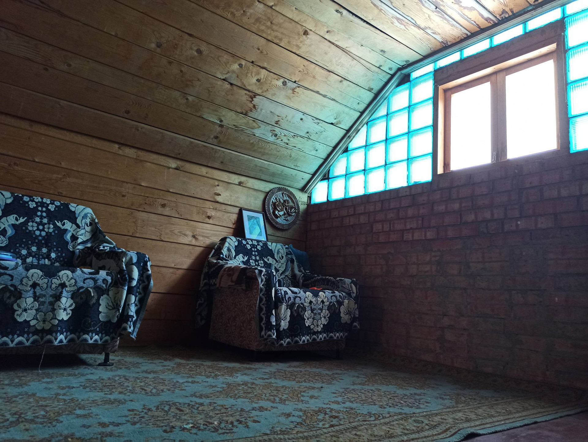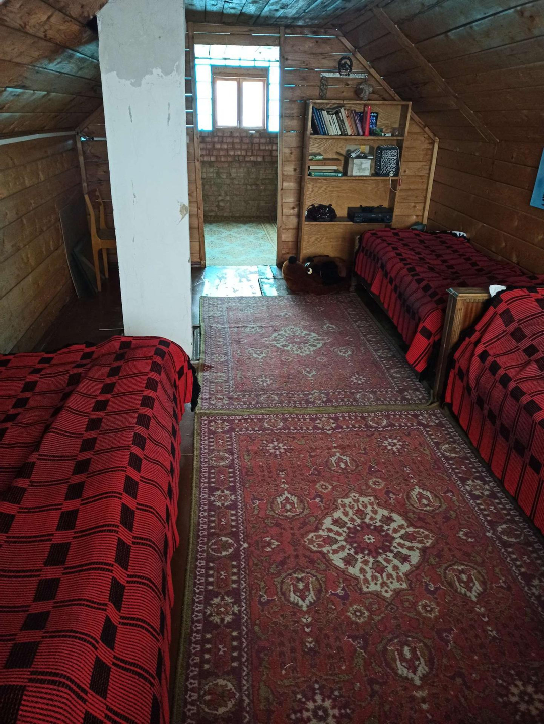 Двухэтажный, на ленточном фундаменте, из бруса отделан кирпичом. В доме печь, теплофоны(зимой точно не замерзнете). На первом этаже веранда, кухня, две спальни, второй этаж мансардный.