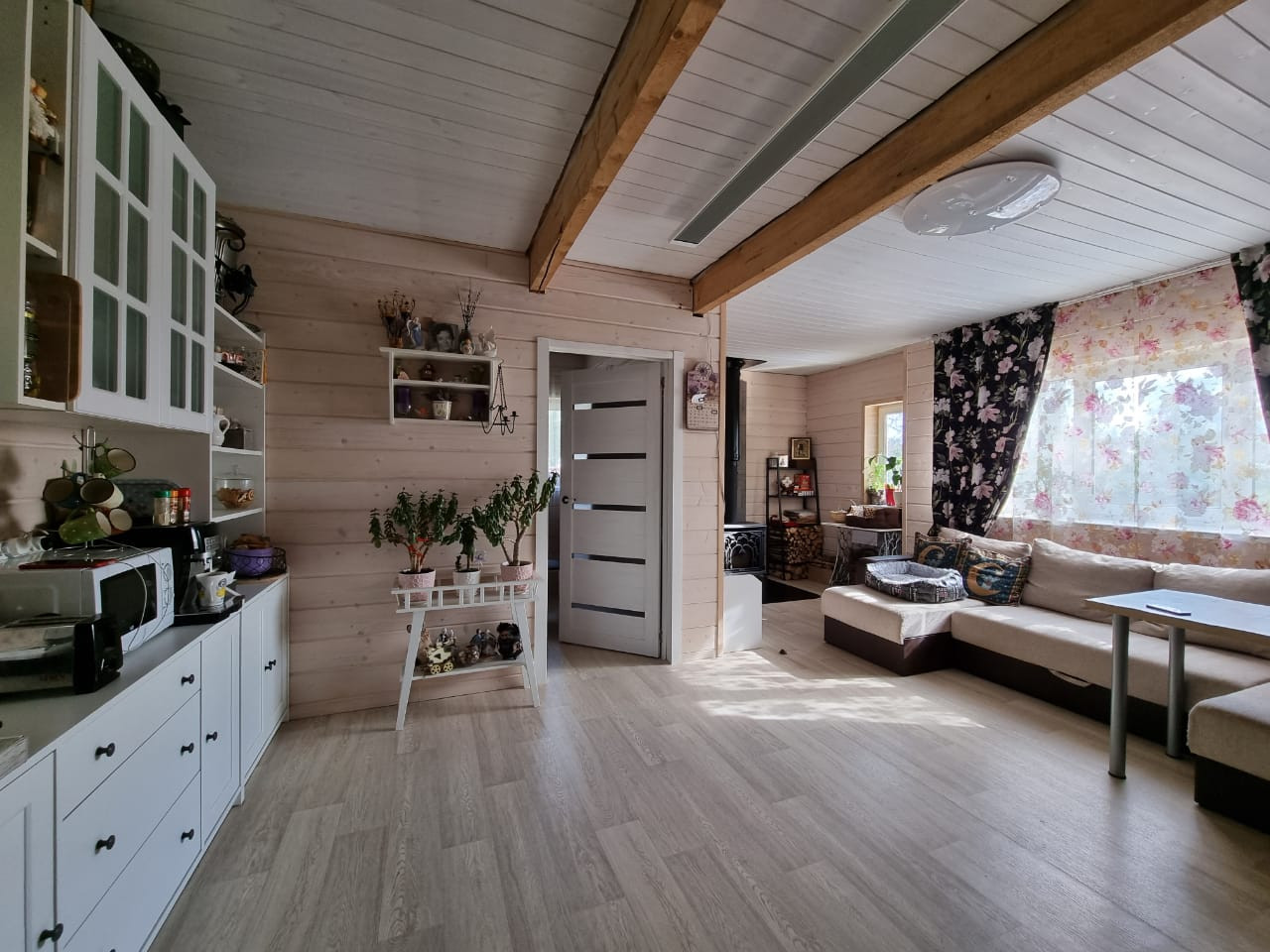 1 этаж - Кухня-гостиная(34м2), небольшая спальная комната(8м2);