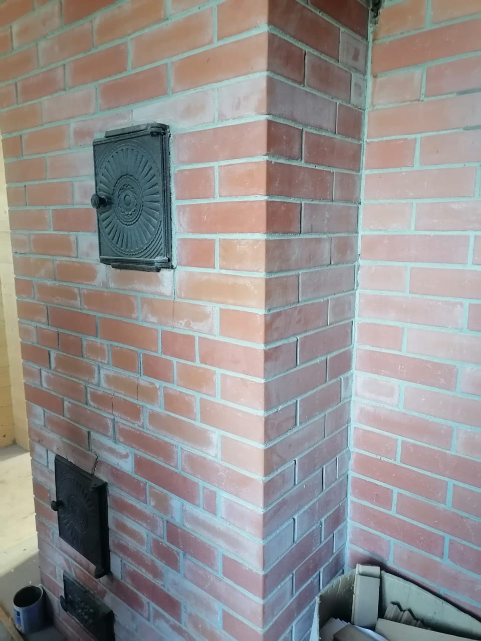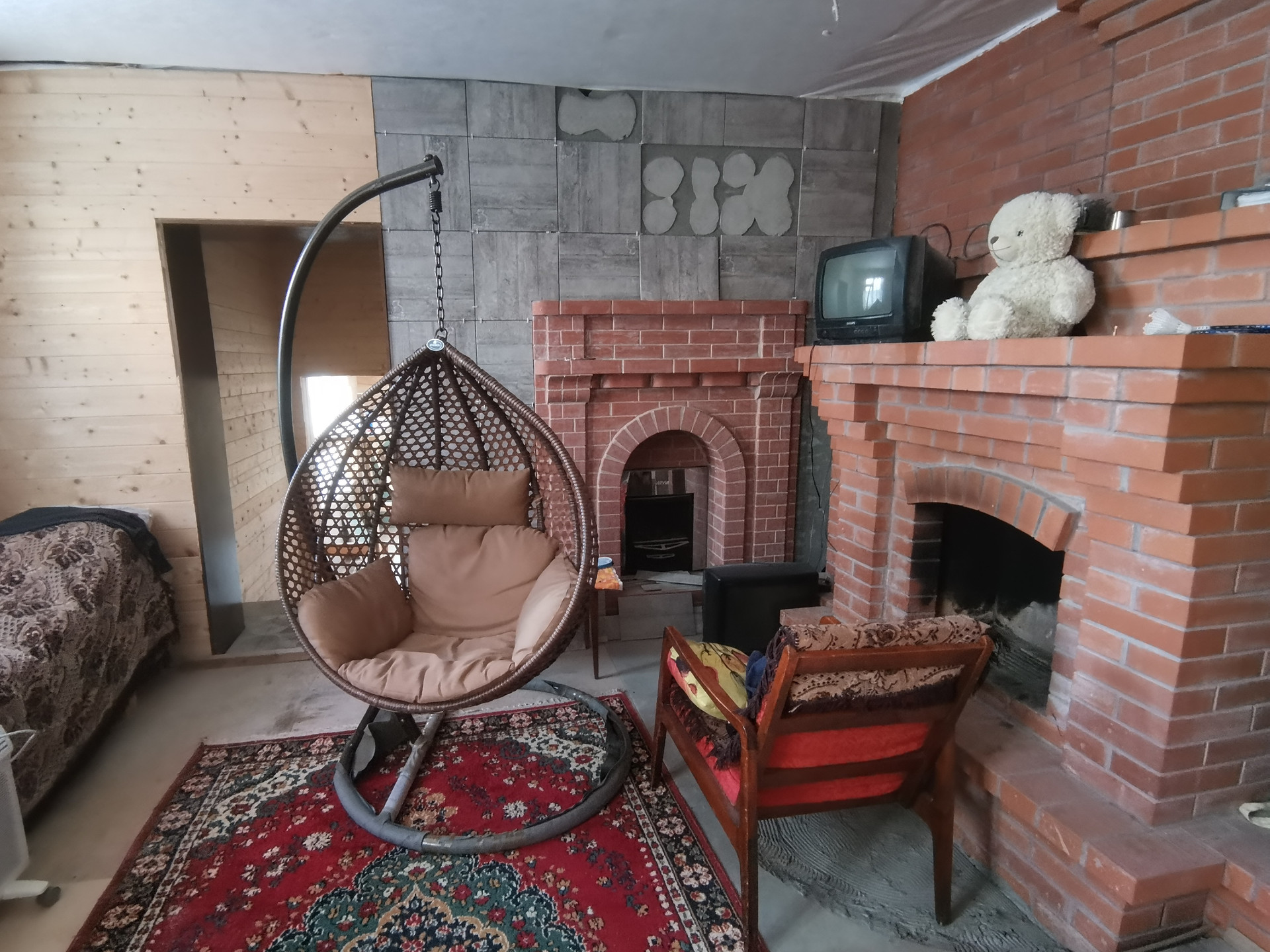 На 1 этаже печь, камин, финская печь - каменка для сауны, прихожая, кухня, гостиная и две спальни, сауна, хоз.блок. Отделка выполнена на 80%.