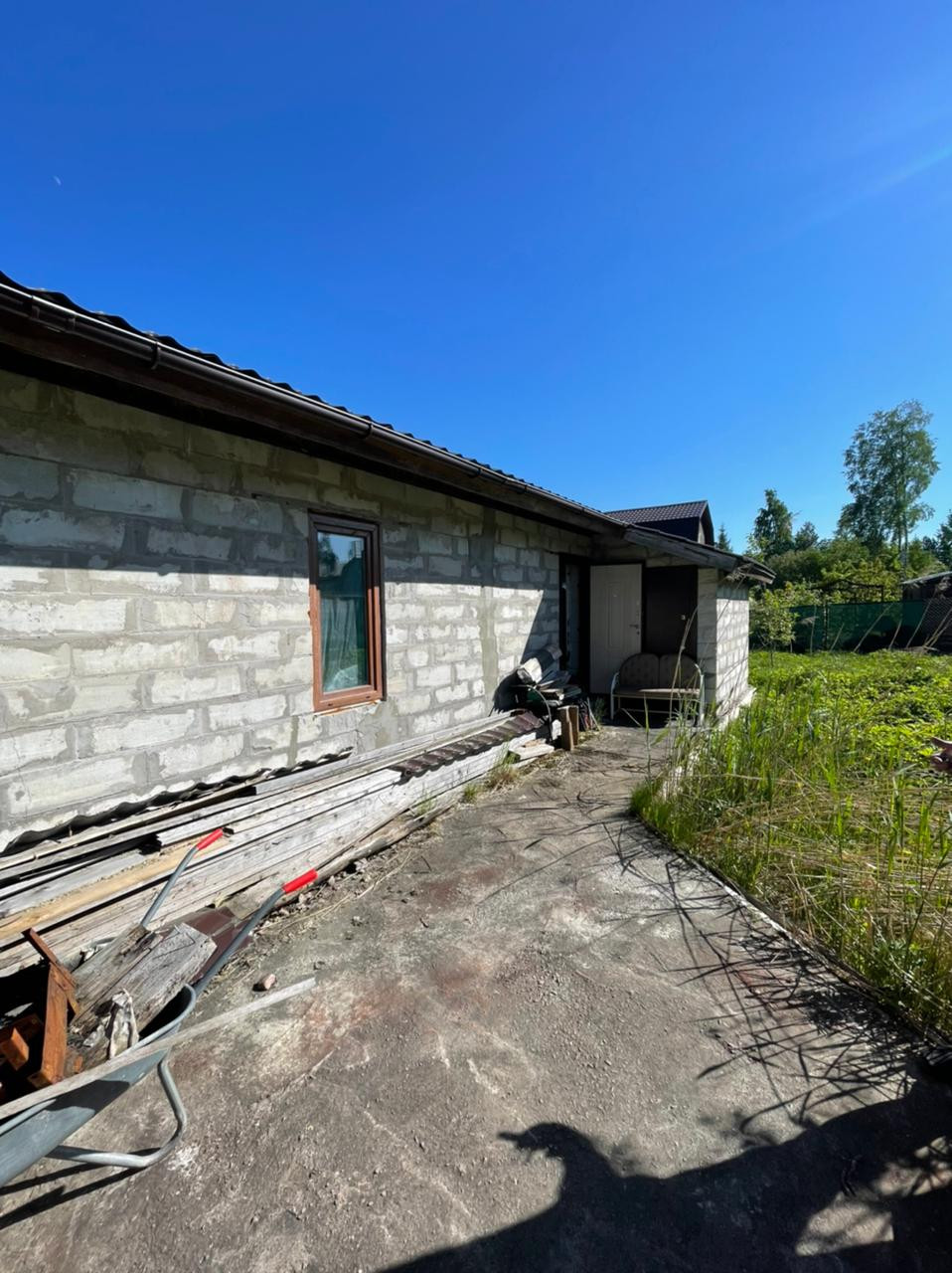 Продается дом 75 кв. м в 3-х км от Красного Села. Обжитое охраняемое садоводство, многие живут постоянно. Участок 6 соток огорожен с 3-х сторон, есть заезд. Дом из пенобетонных блоков стоит на бетонной плите 122 кв. м, крыша утеплена, покрыта металлочерепицей - материалы дорогие, строили для себя. Прихожая, кухня-гостиная, спальня с гардеробной, детская комната, раздельный санузел с угловой ванной. Все коммуникации заведены в дом: отопление - электроконвекторы, вода от своего колодца, электричество 15 кВт (380 Вт), септик на 3 и 2 кольца. Дом с частичной отделкой: стены - гипрок, потолок - вагонка. Есть дизайн проект. Планируется газификация. Дом оформлен в собственность как жилой - возможна прописка. Очень удобная локация дома: до метро " Московская" на машине минут 20 (или на автобусе), до ж/д ст. Красное Село 3 км - ходят маршрутки, остановка общественного транспорта рядом с СНТ. Садоводство охраняемое, въезд через шлагбаум по брелоку. На территории СНТ продуктово-хозяйственный магазин (круглогодичный), медпункт, мини-пекарня, детская площадка, часовня. Рассматриваем ипотеку, субсидии, материнский капитал, земельный сертификат.
