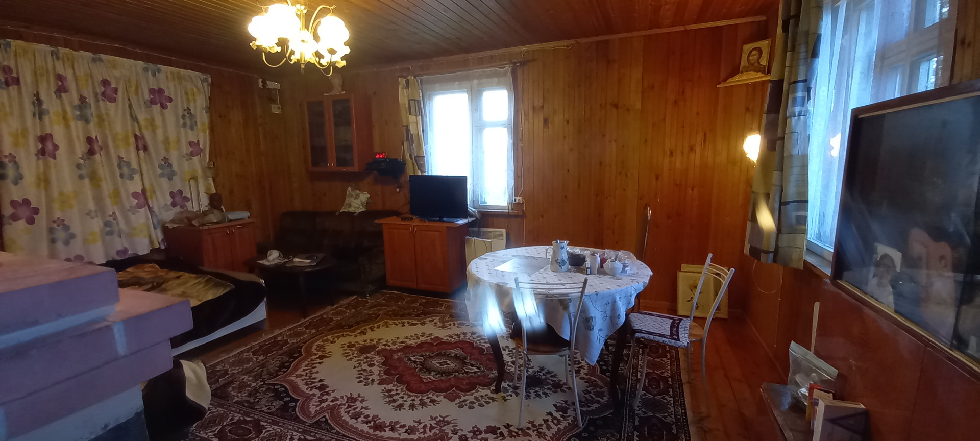 Внутри вагонка. Пол-линолеум, отопление печное + электро. Локальная канализация.