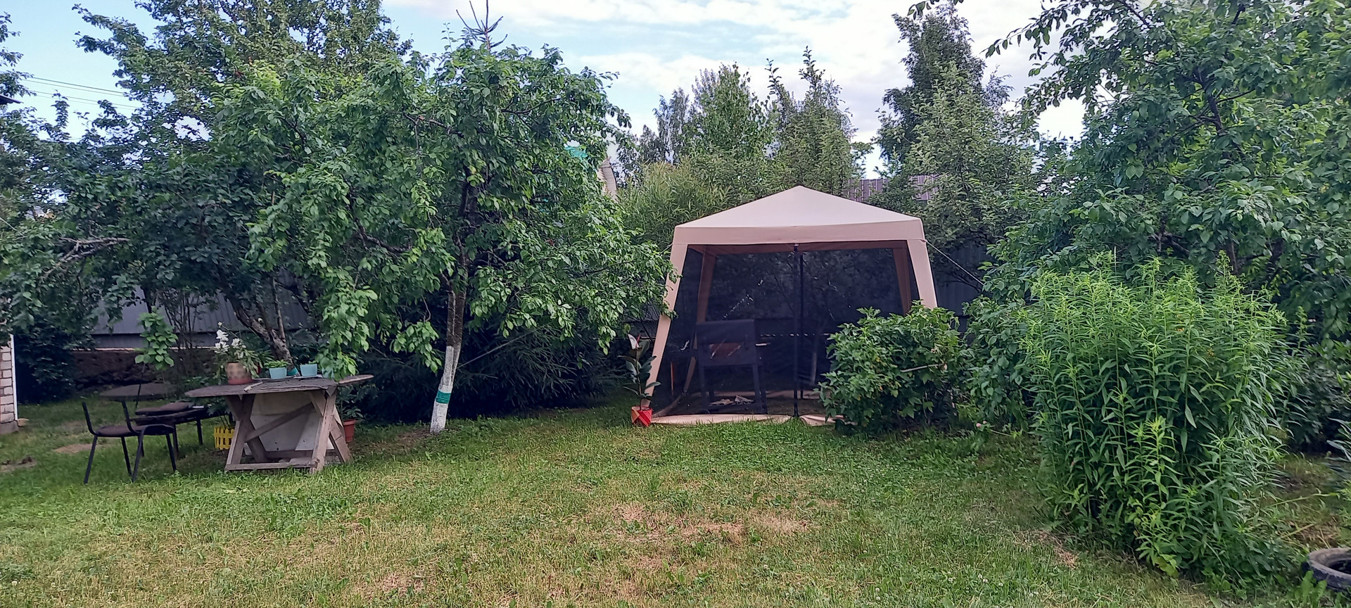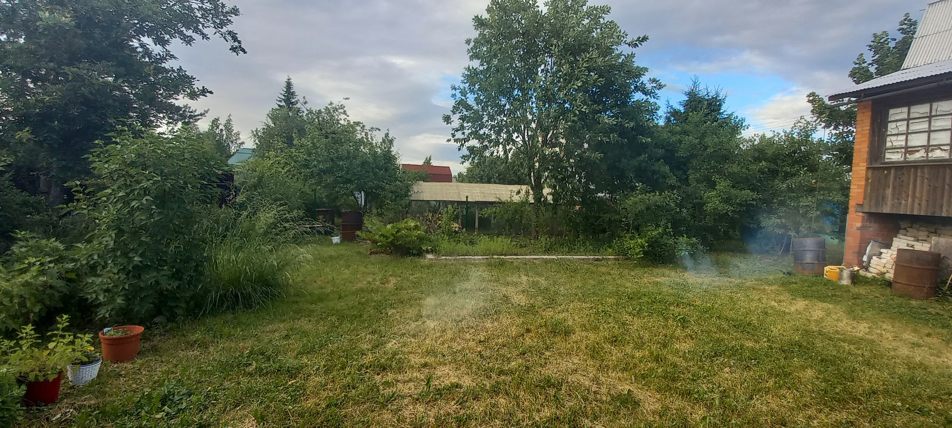 На участке имеются плодовые деревья и ягодные кусты, цветы и декоративные посадки.