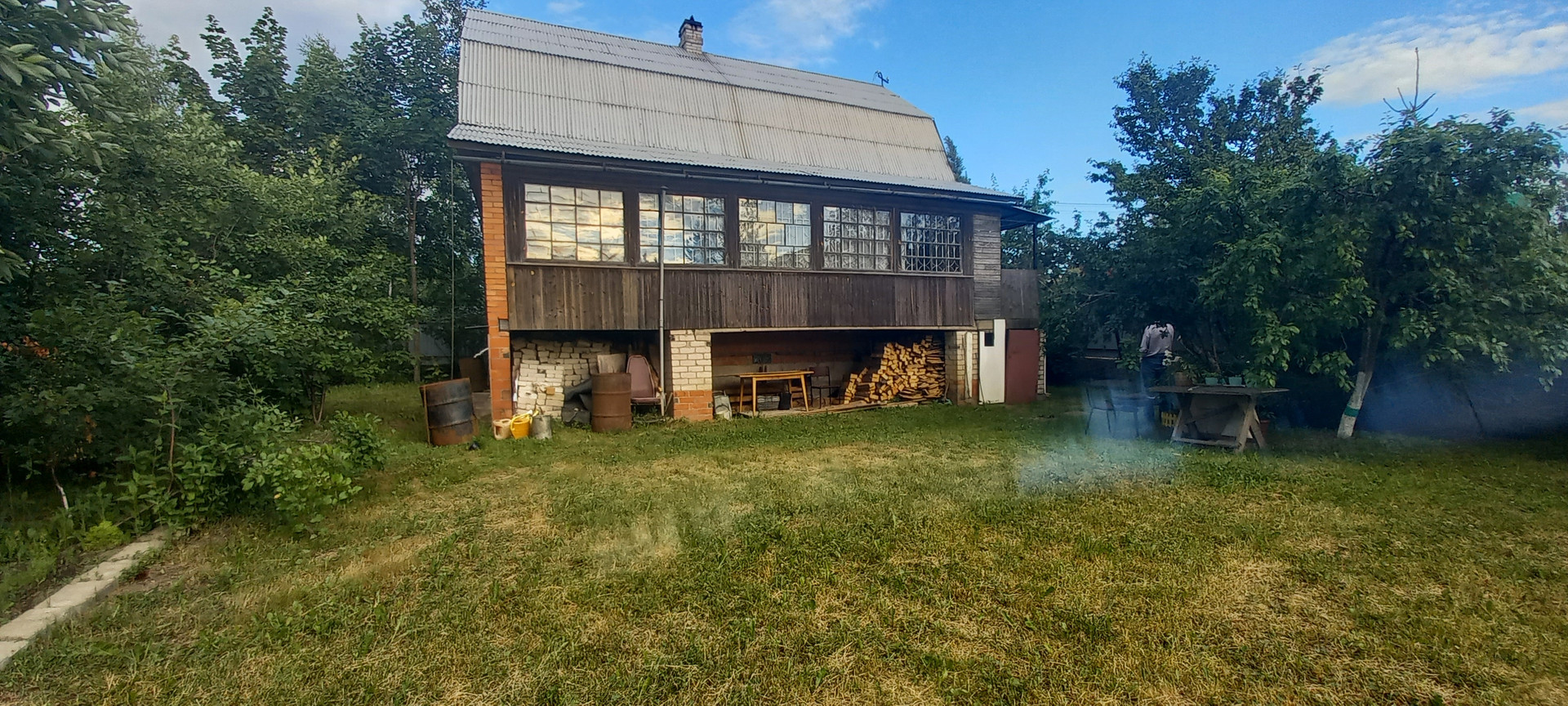 На первом этаже расположены: две просторные веранды с летней кухней, большая комната 36 м2 с печкой, небольшая сауна, санузел.