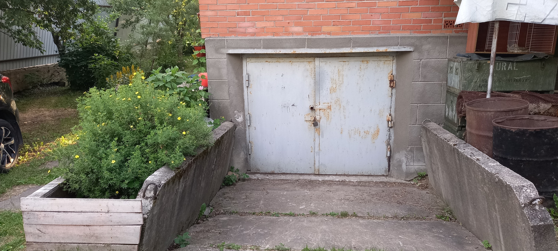 Ворота откатные. Есть место для парковки.