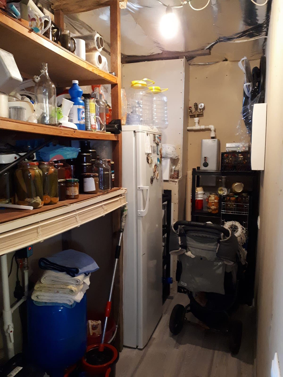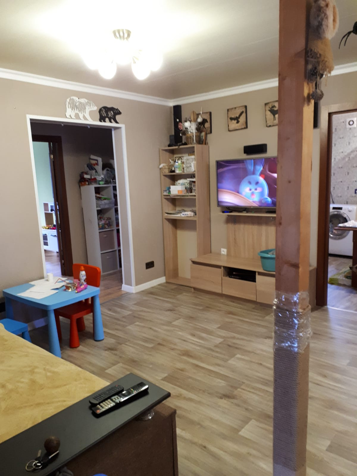 В доме три спальни, две из них с гардеробными, кухня-гостинная площадью 24 кв.м, совмещенный с/у и еще полноценная комната, которая используется как хозяйственная для хранения вещей.
