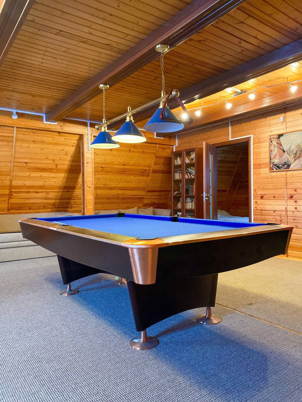зона отдыха с бильярдом и библиотекой.