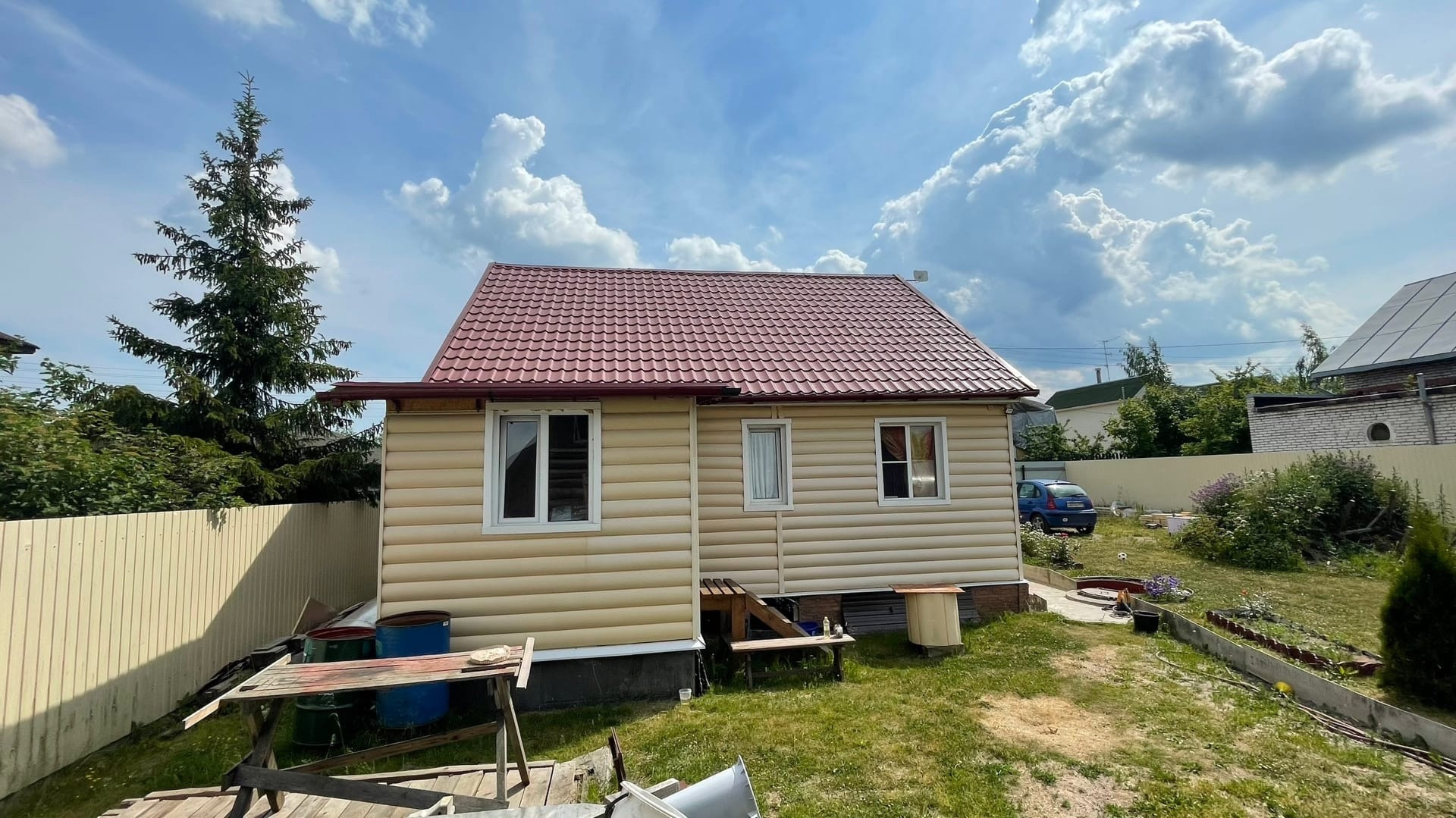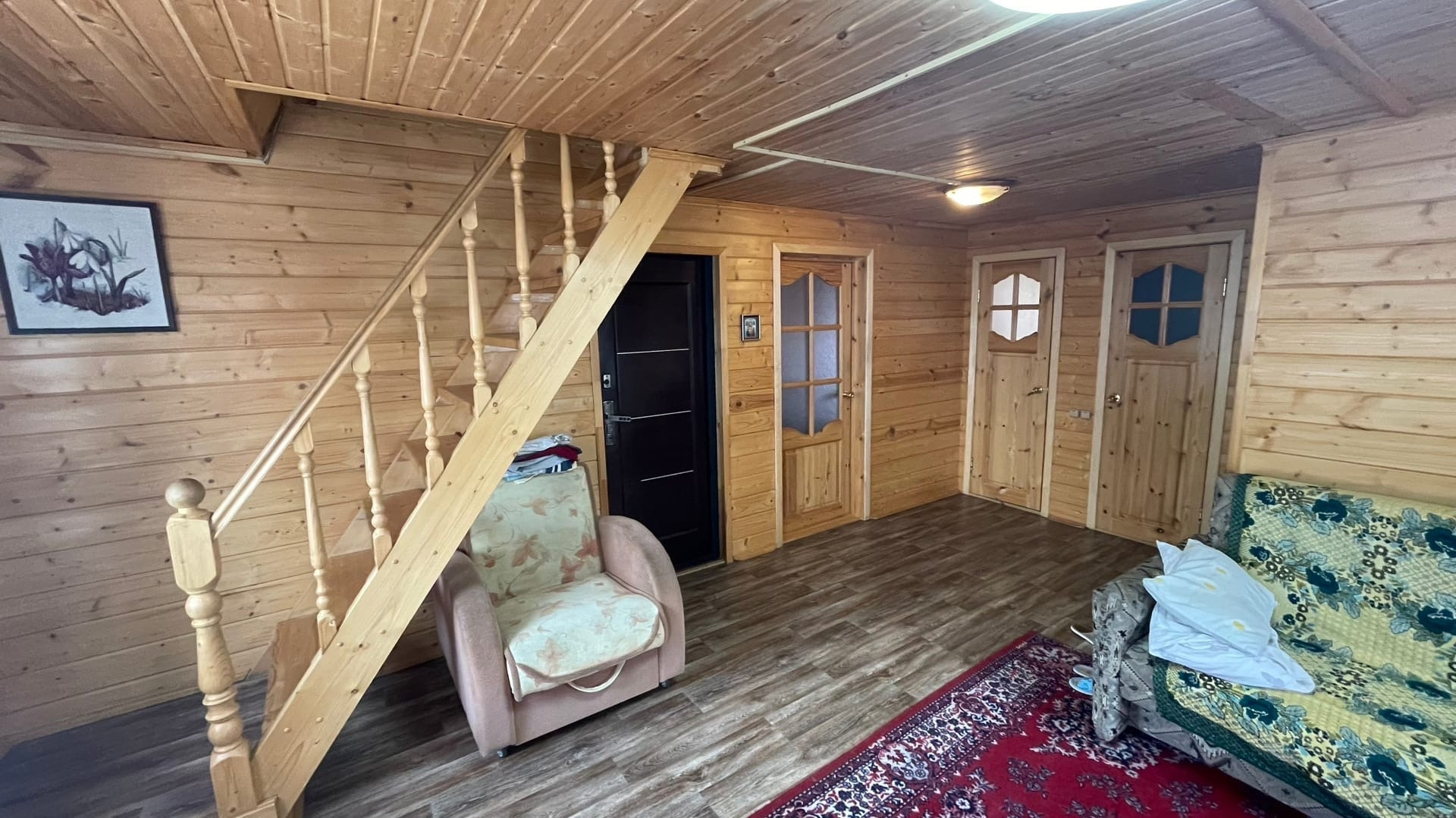 Качественно построенный зимний дом.На первом этаже веранда,большая гостиная,спальня и раздельный санузел.На втором этаже две комнаты.Дом обит сайдингом.На участке есть сруб для бани но он используется под склад-его можно переоборудовать под баньку Дренажная канава по периметру.Канализация локальная.Вода-скважина.Отопление дома конвекторы по всему дому.Проживание круглогодичное.Просмотры по договорённости