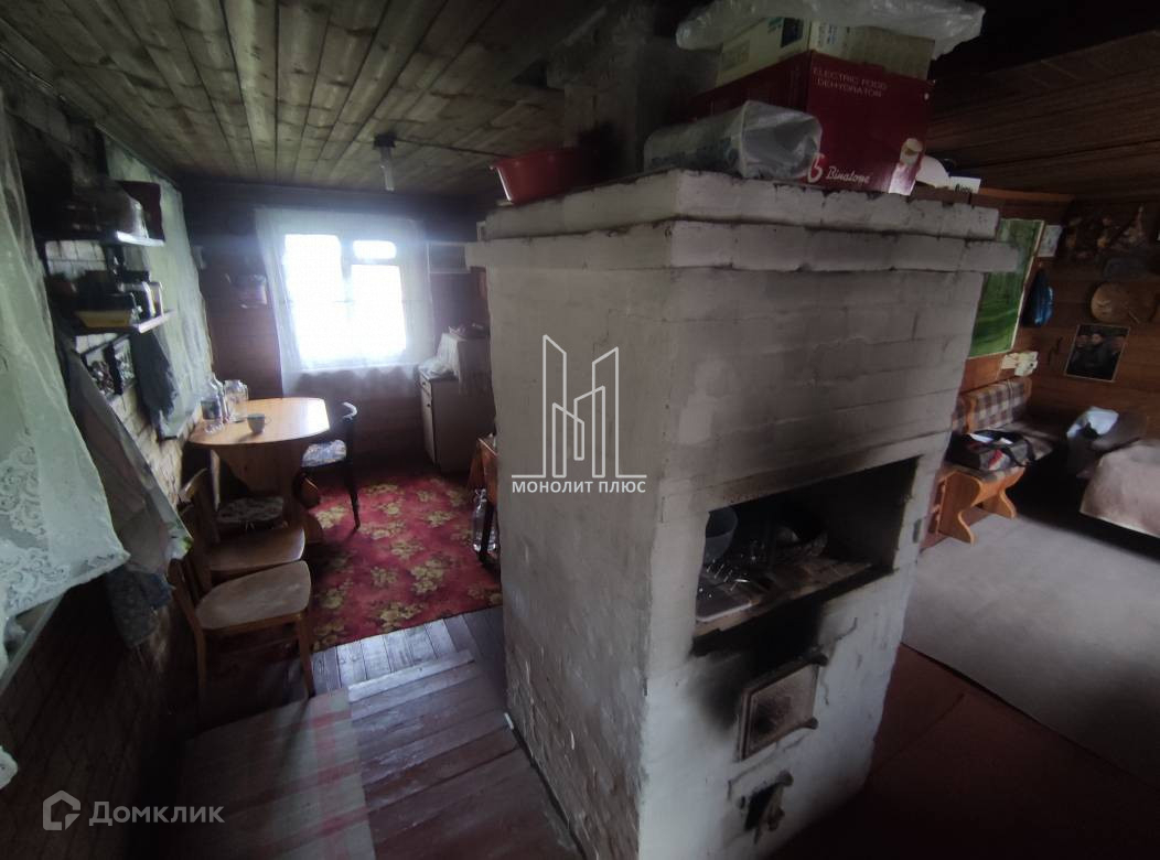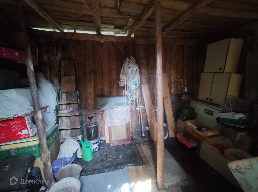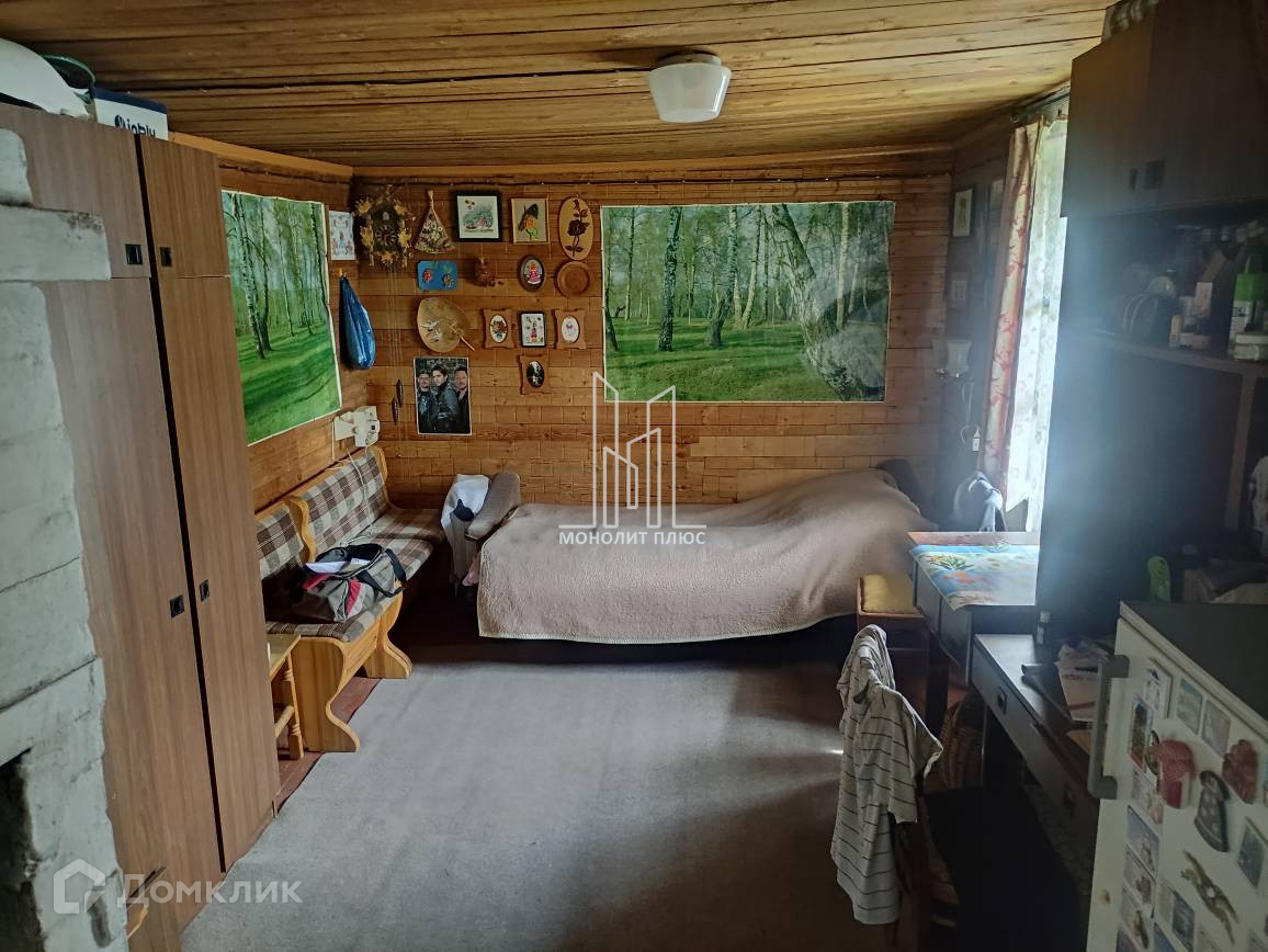 Дом 1993г. построен из бревна. Фундамент-ж/б лента, внутренняя и наружная отделка- вагонка, крыша покрыта оцинкованным железом. Дом обогревается печкой. На первом этаже находятся коридор, кухня-гостиная с печкой и комната. На втором-одна большая комната. Также на участке есть сарай и туалет.