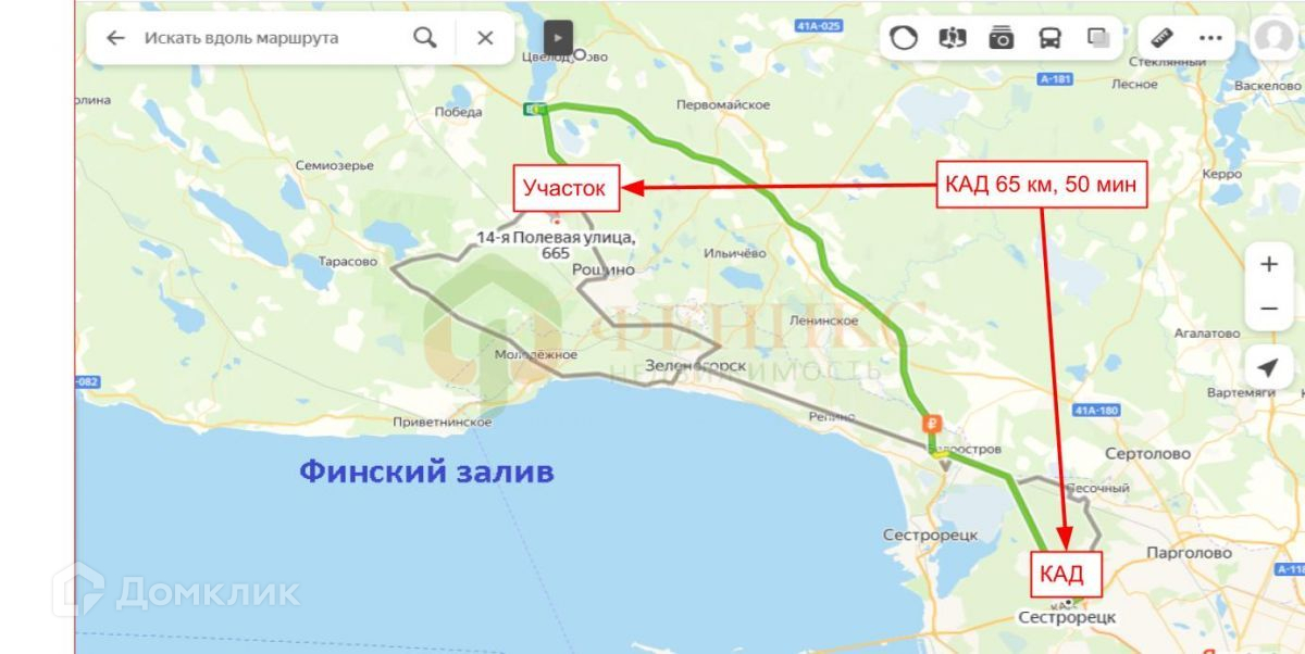 50 мин. от КАД на автомобиле. В пешей доступности ж\д станция .Горьковская - 950 метров