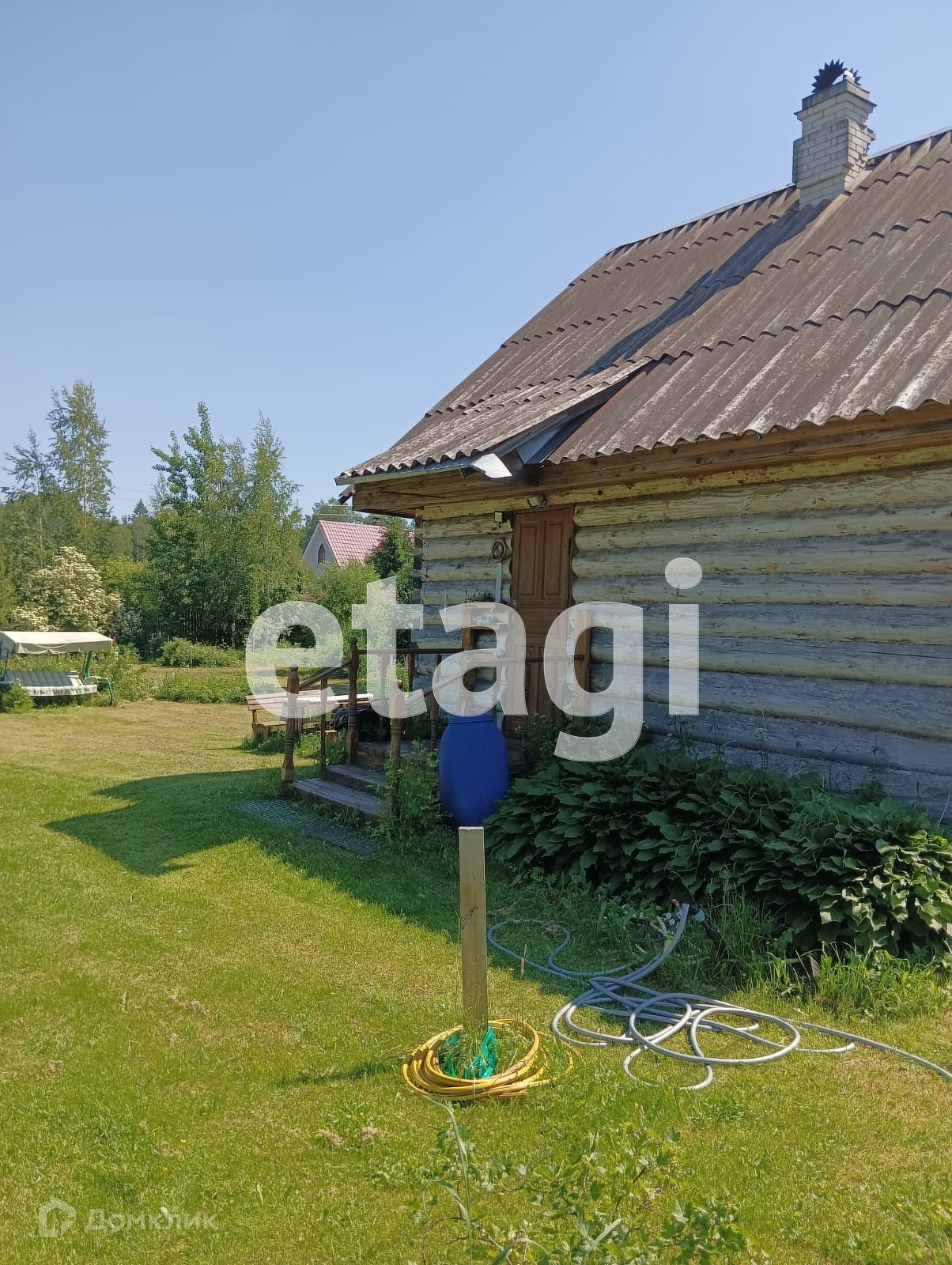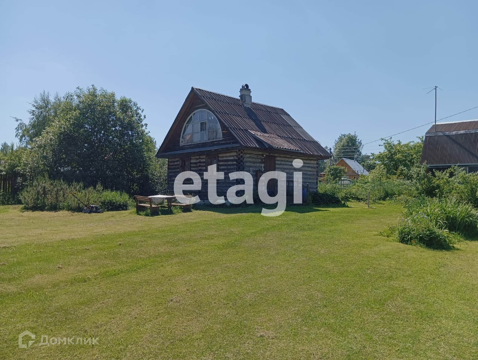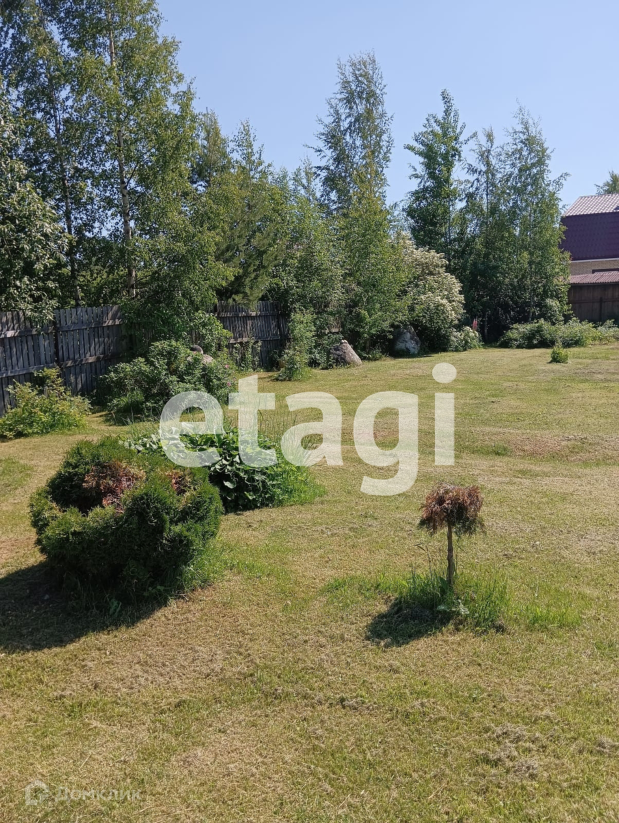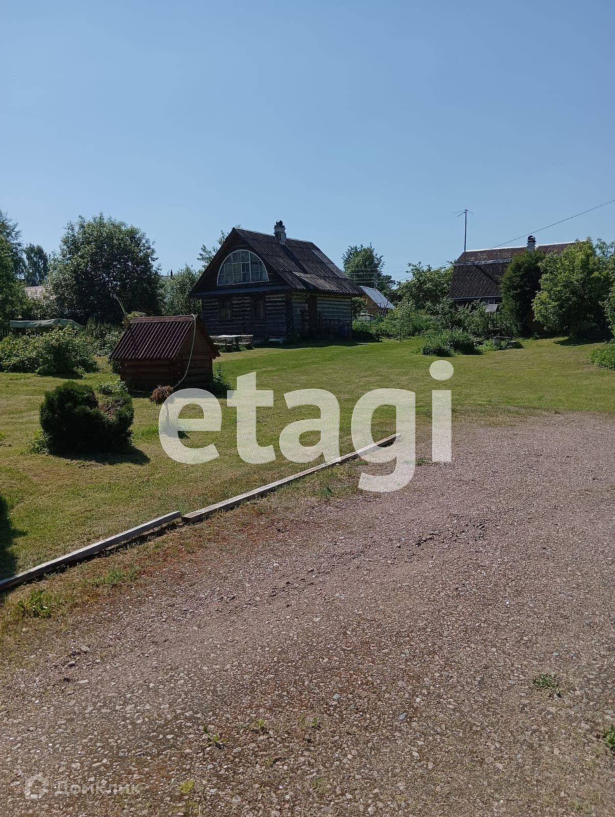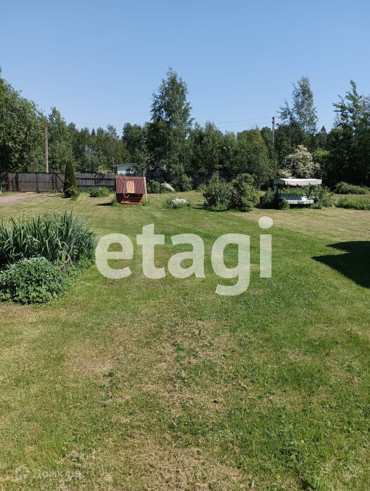 Участок разработан общей площадью 10 соток, есть возможность докупить еще 10 состок. Сделана классная лужайка, растут плодовые деревья. На одной части расположен небольшой сруб из северного леса. На второй возможно разместить полноценный дом, а сруб переоборудовать в баню или гостевой дом. Сделана стоянка для авто (отсыпана и утрамбована подушка) и установлены откатные ворота.