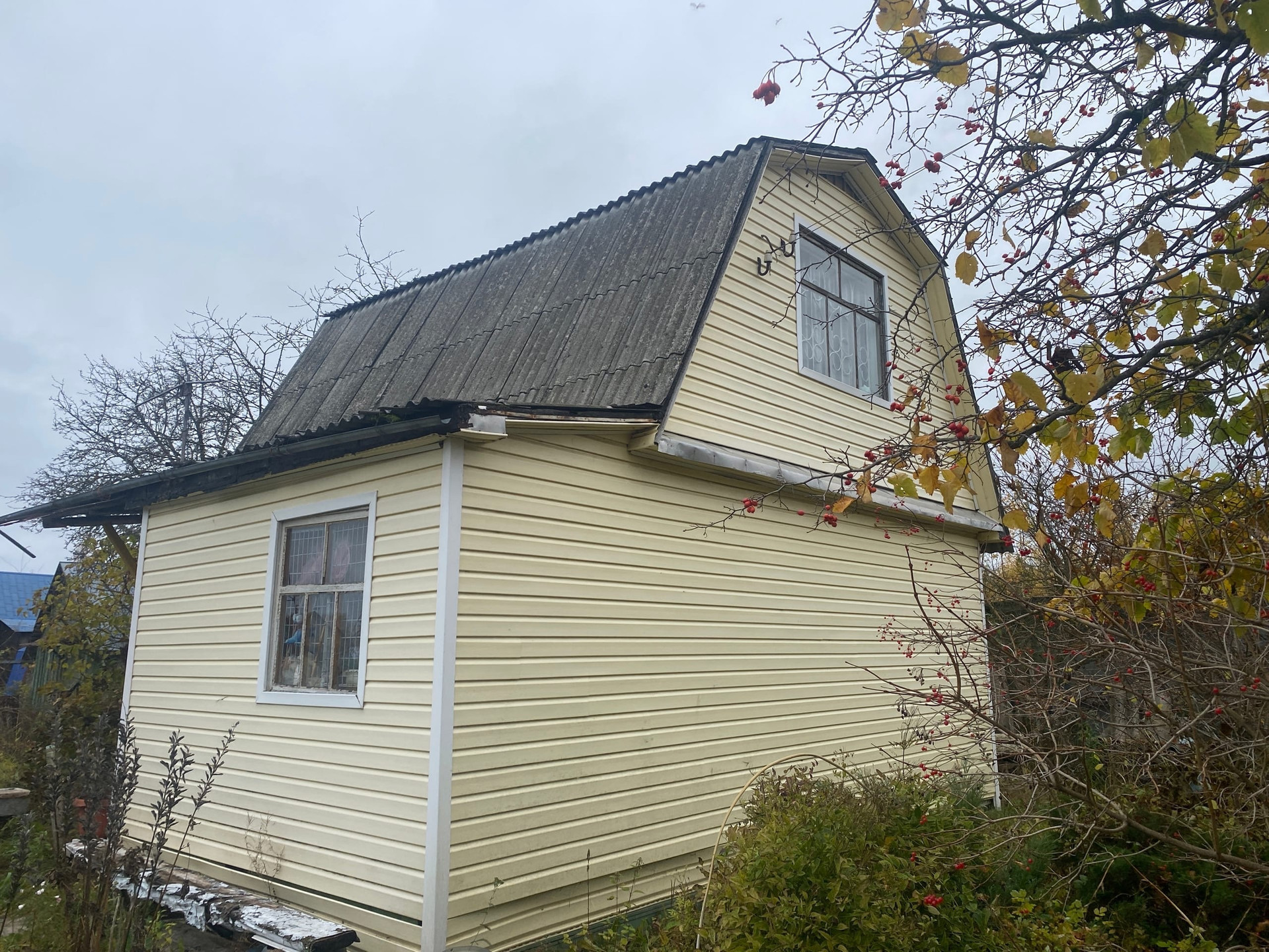 ✓ Материал стен - дерево, крыша покрыта шифером, фундамент - бетонные блоки.