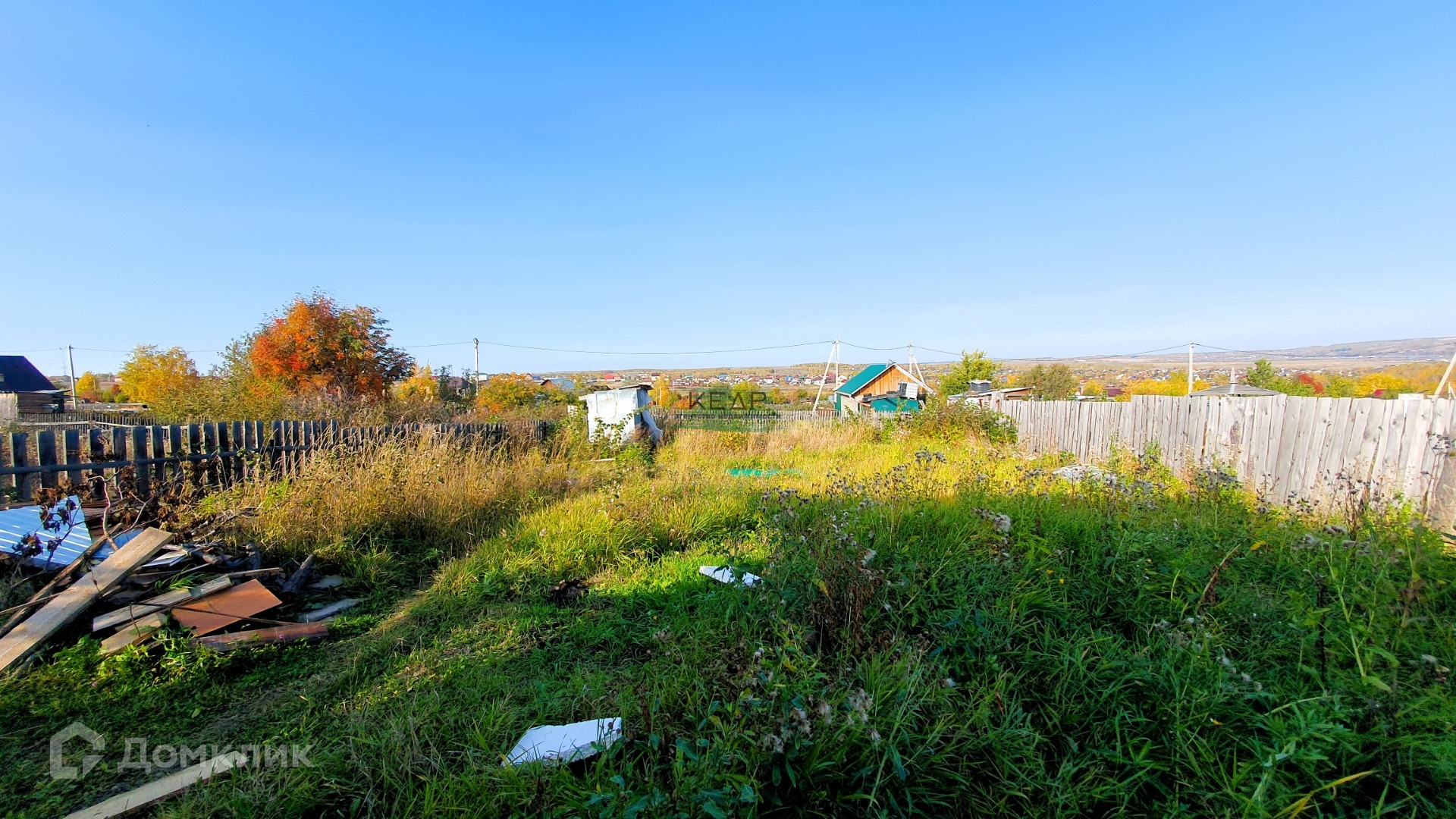 Участок правильной формы, огорожен деревянным забором. Проезд круглогодичный.