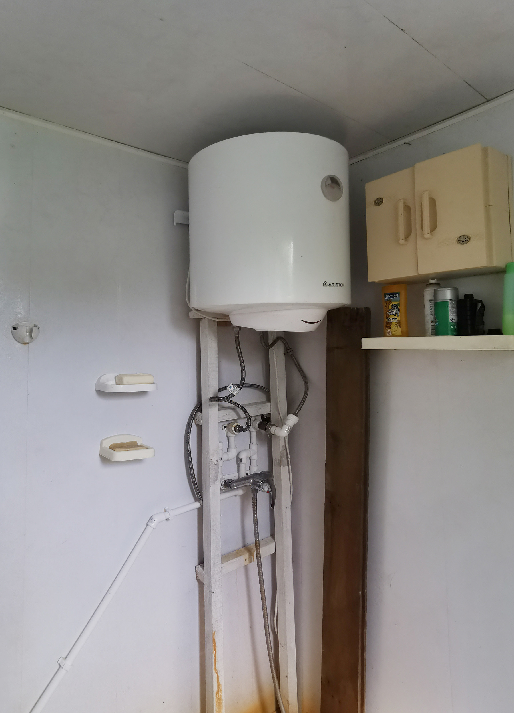 Отдельно стоящий домик с душевой, бойлером и сауной.