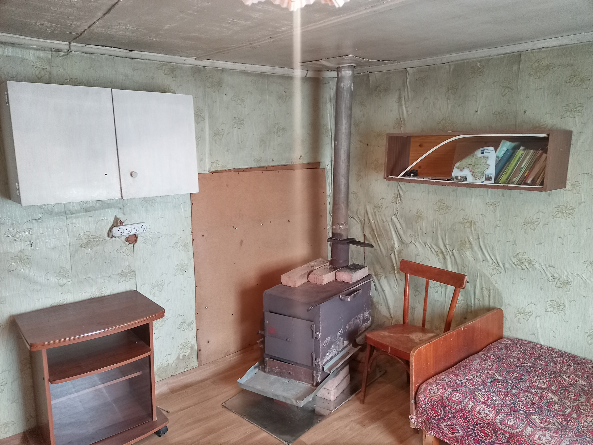 Не участке есть двухэтажный дом, первый этаж утепленный - веранда, комната и кухня, второй этаж комната летняя. Есть электричество, отопление - металлическая печь.