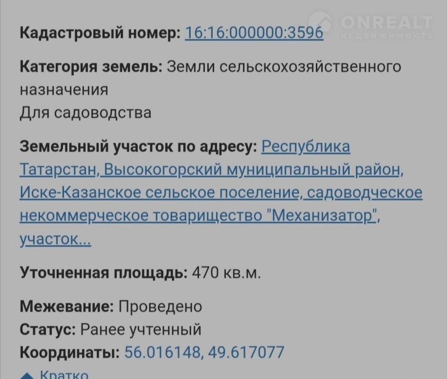 Продается дачный участок 4,7 соток в СНТ "Механизатор", с. Куркачи Высокогорского р-на, в 10 минутах от станции электрички о.п. 835 км. Свой отдельный заезд  на аллею от основной дороги.