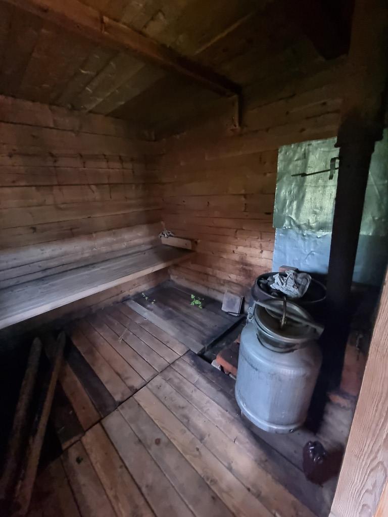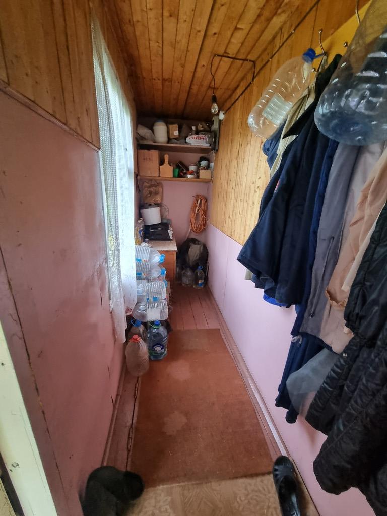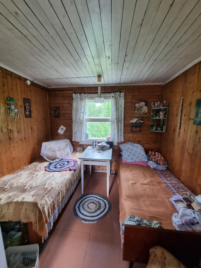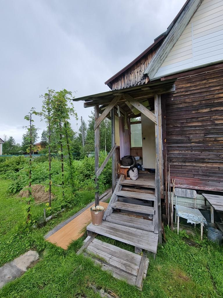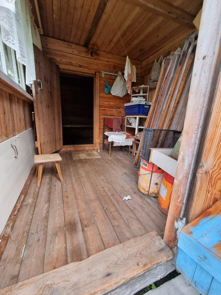 Дом из бруса, стоит на металлических сваях. Отапливается печью. Есть мансарданый этаж, оборудованный под комнату.