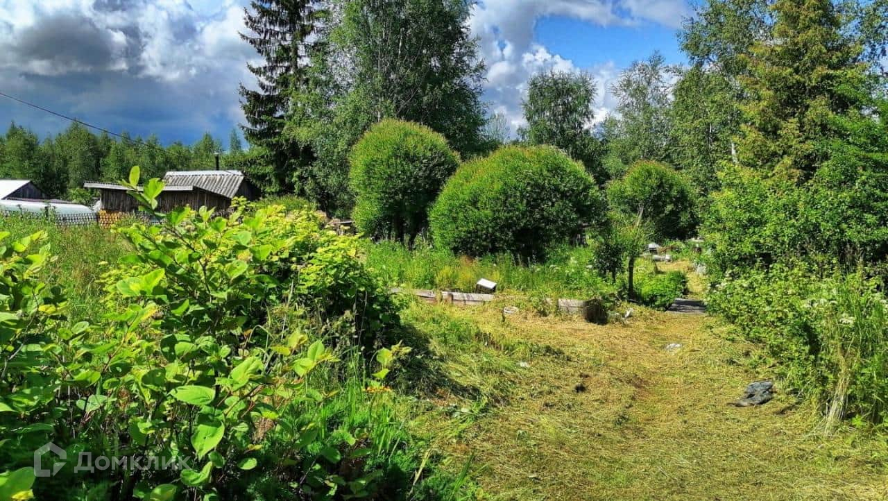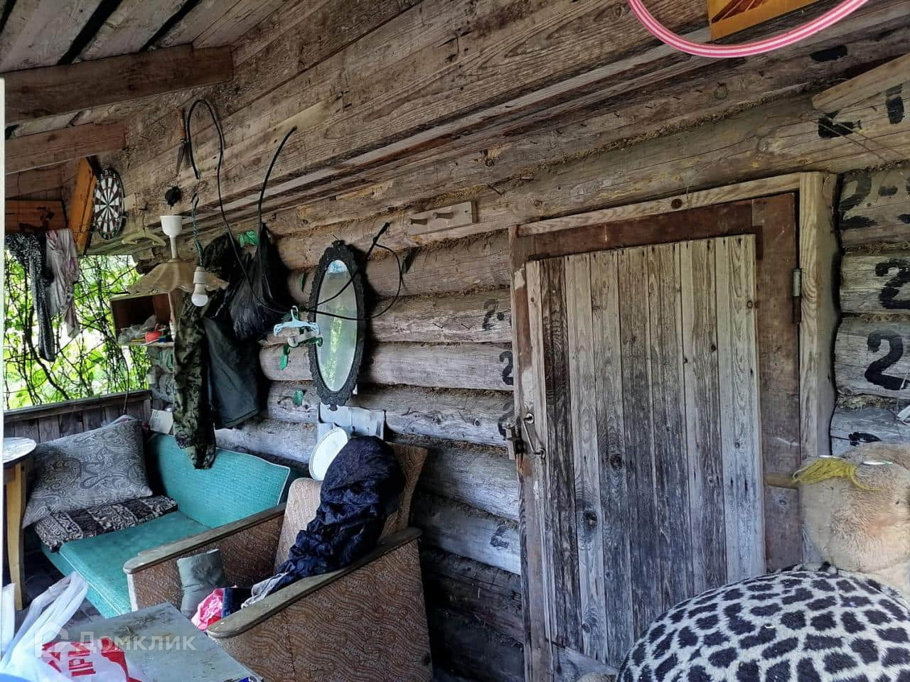 На участке расположен бревенчатый домик,