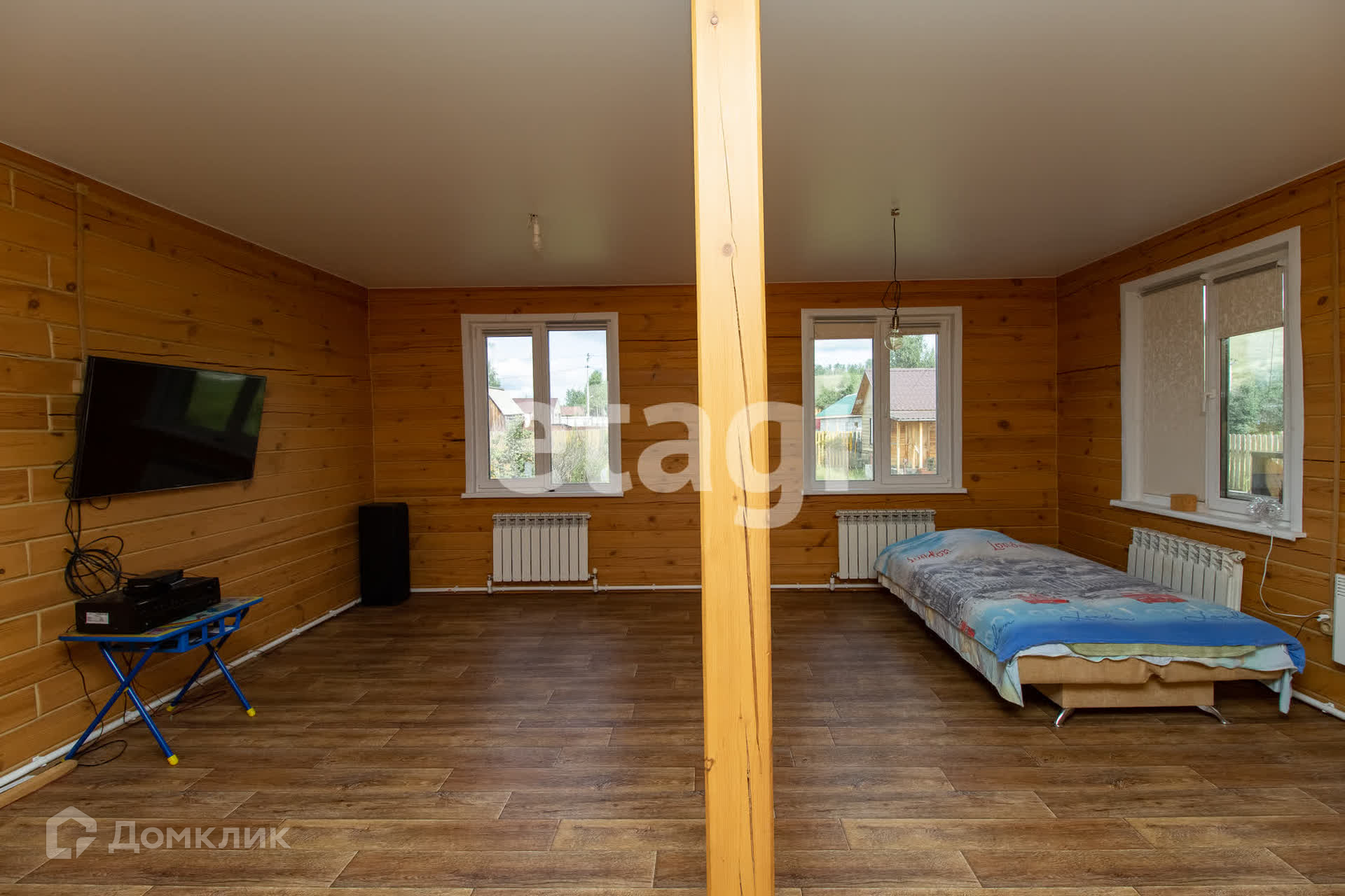 Дом 108 м.кв., построен в 2017 году, два этажа,четыре комнаты. На первом этаже просторная гостиная, одна спальня, кухня, сан. узел. В сан.узле душевая кабина,бойлер, установлен теплый пол. На втором этаже две отдельные спальни, место под гардеробную.Отделка внутри: стены - шлифованный брус, пол линолеум, потолок натяжной.