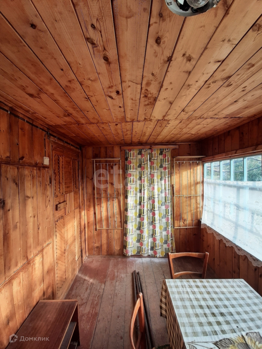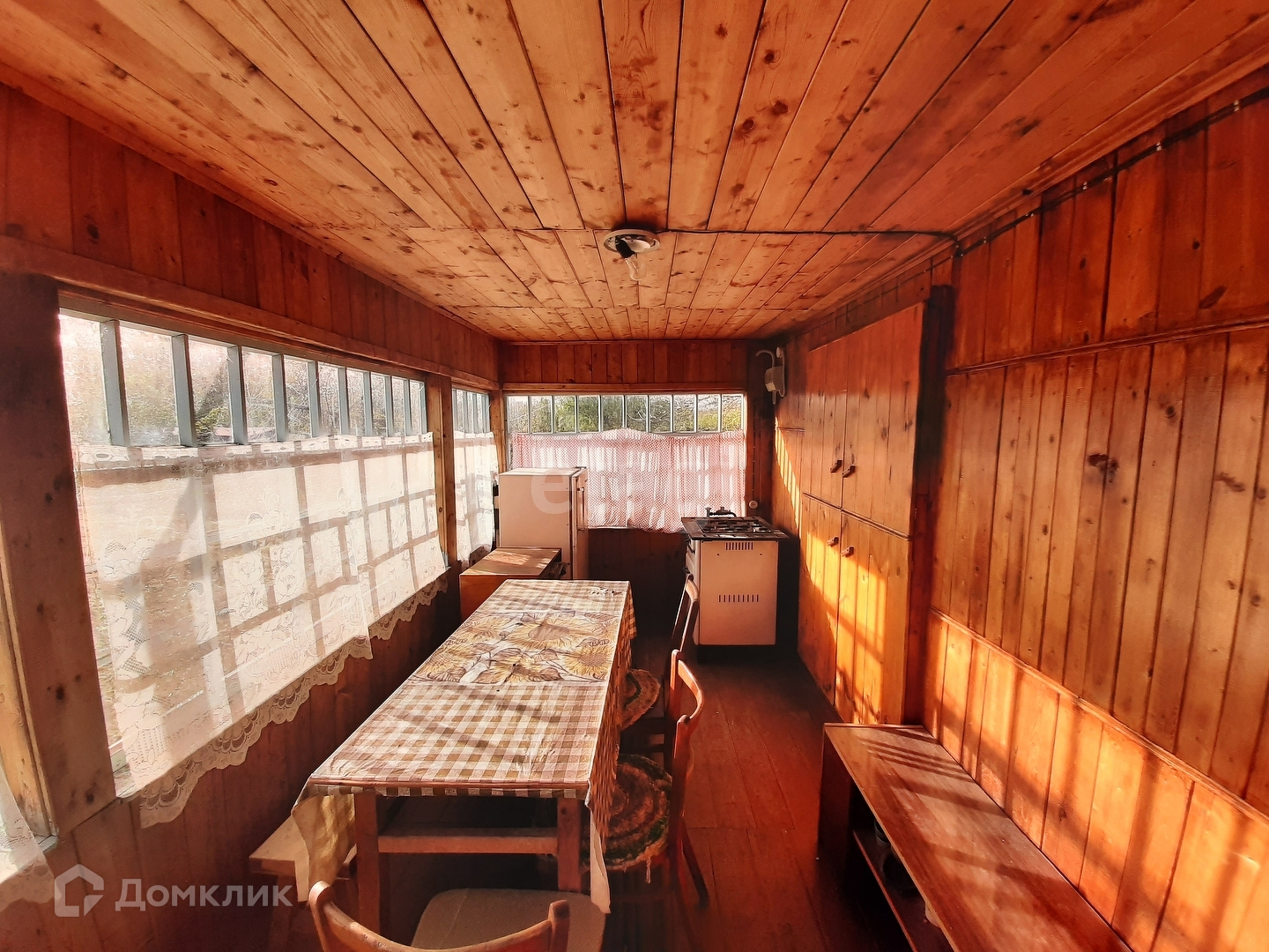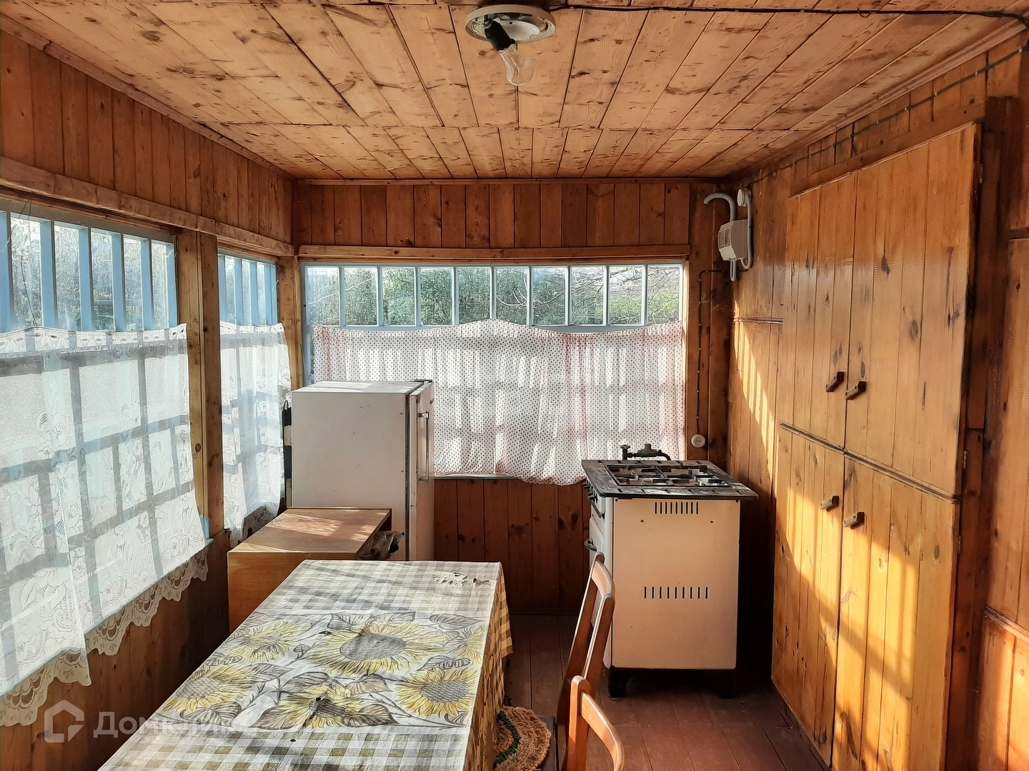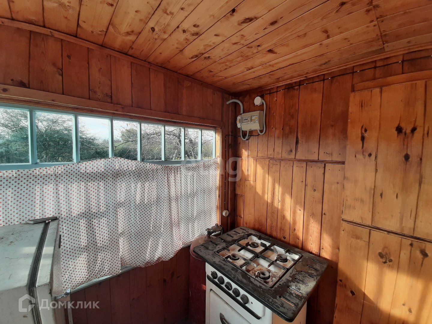 На участке есть жилой рубленый дачный домик.Внутри домик отделан деревом. В дом заведено электричество. На веранде установлена газовая плита с баллонным газом. Дом отапливается печью-камином.