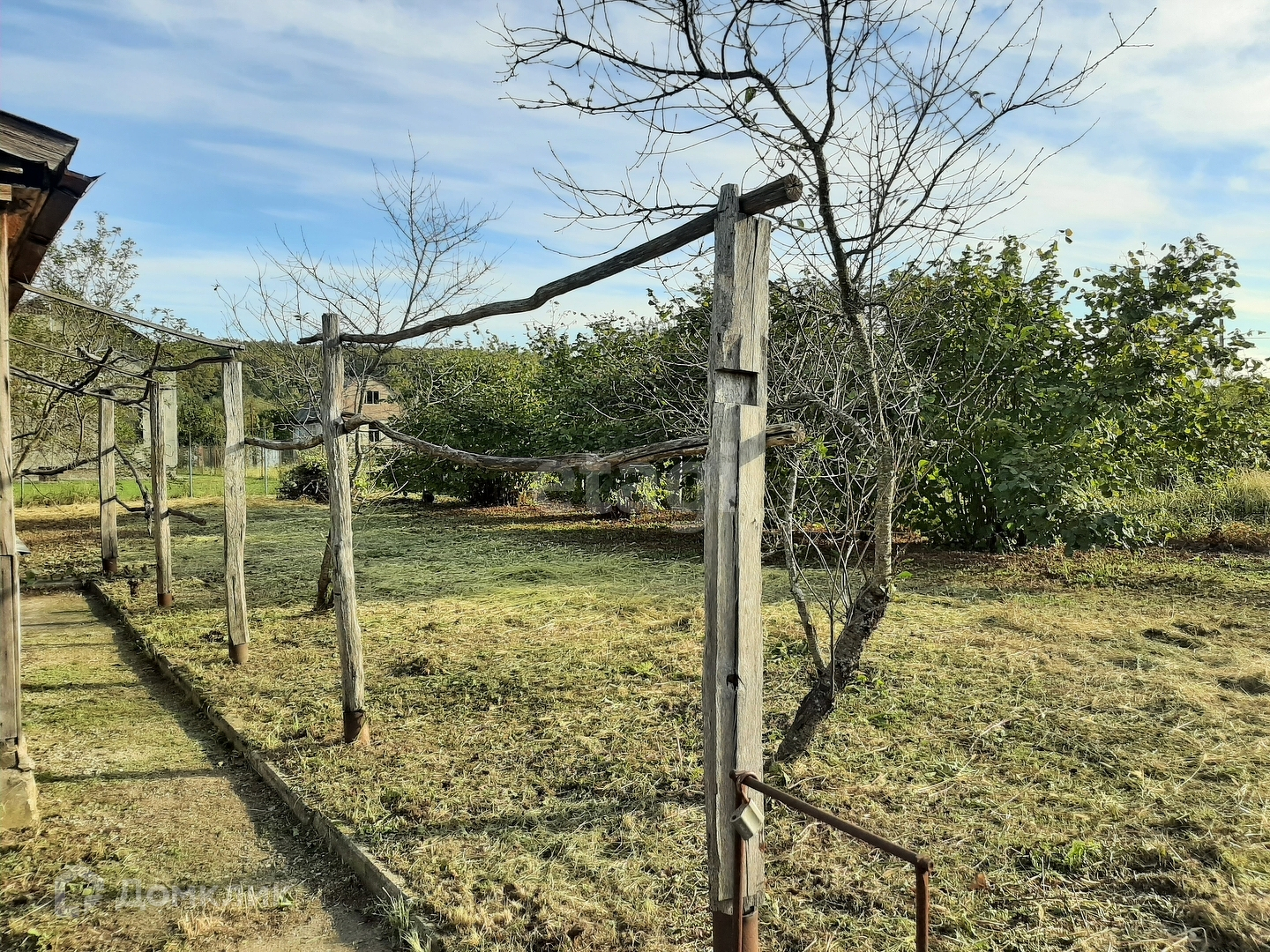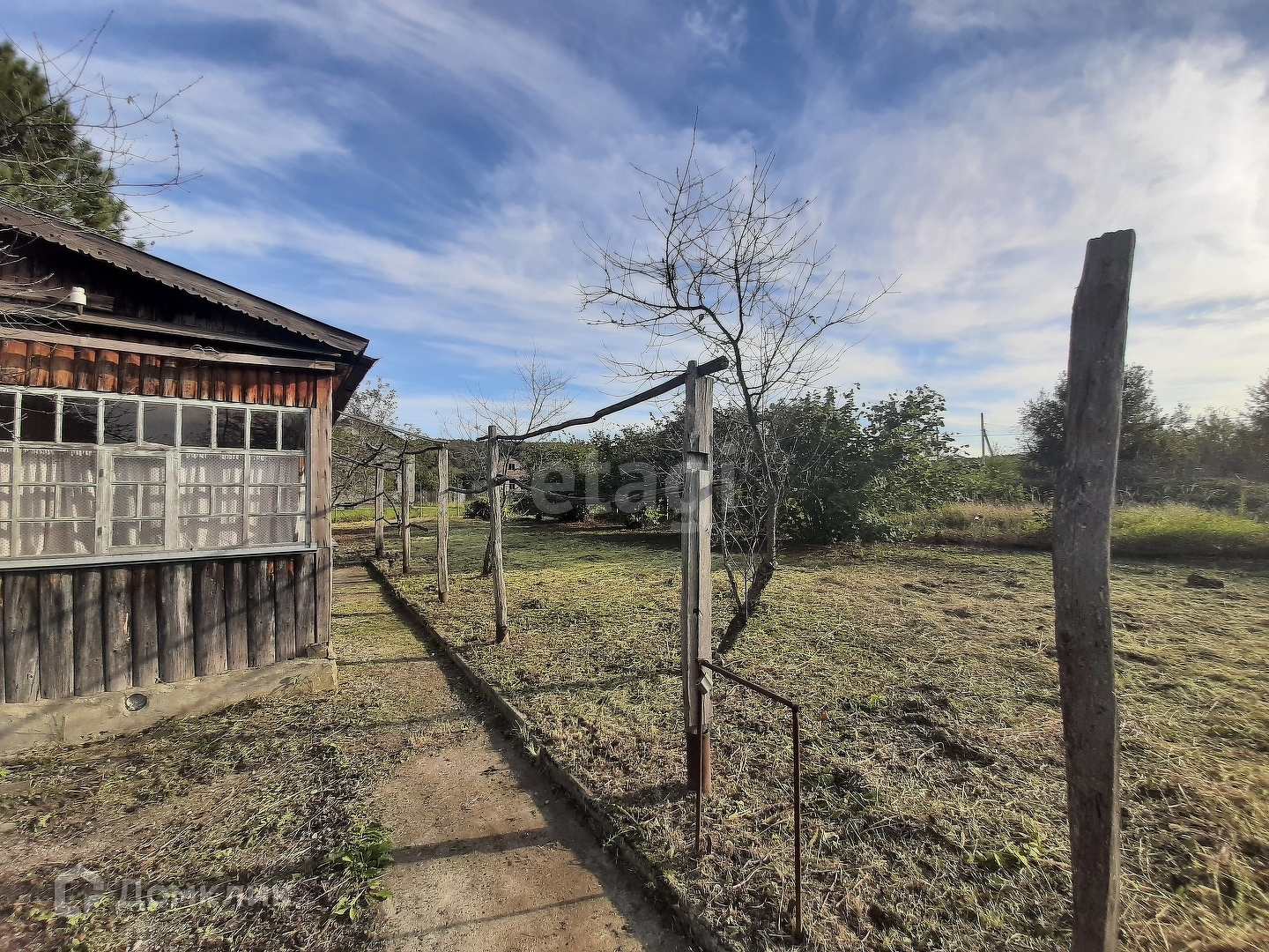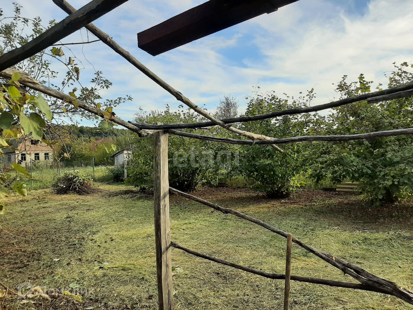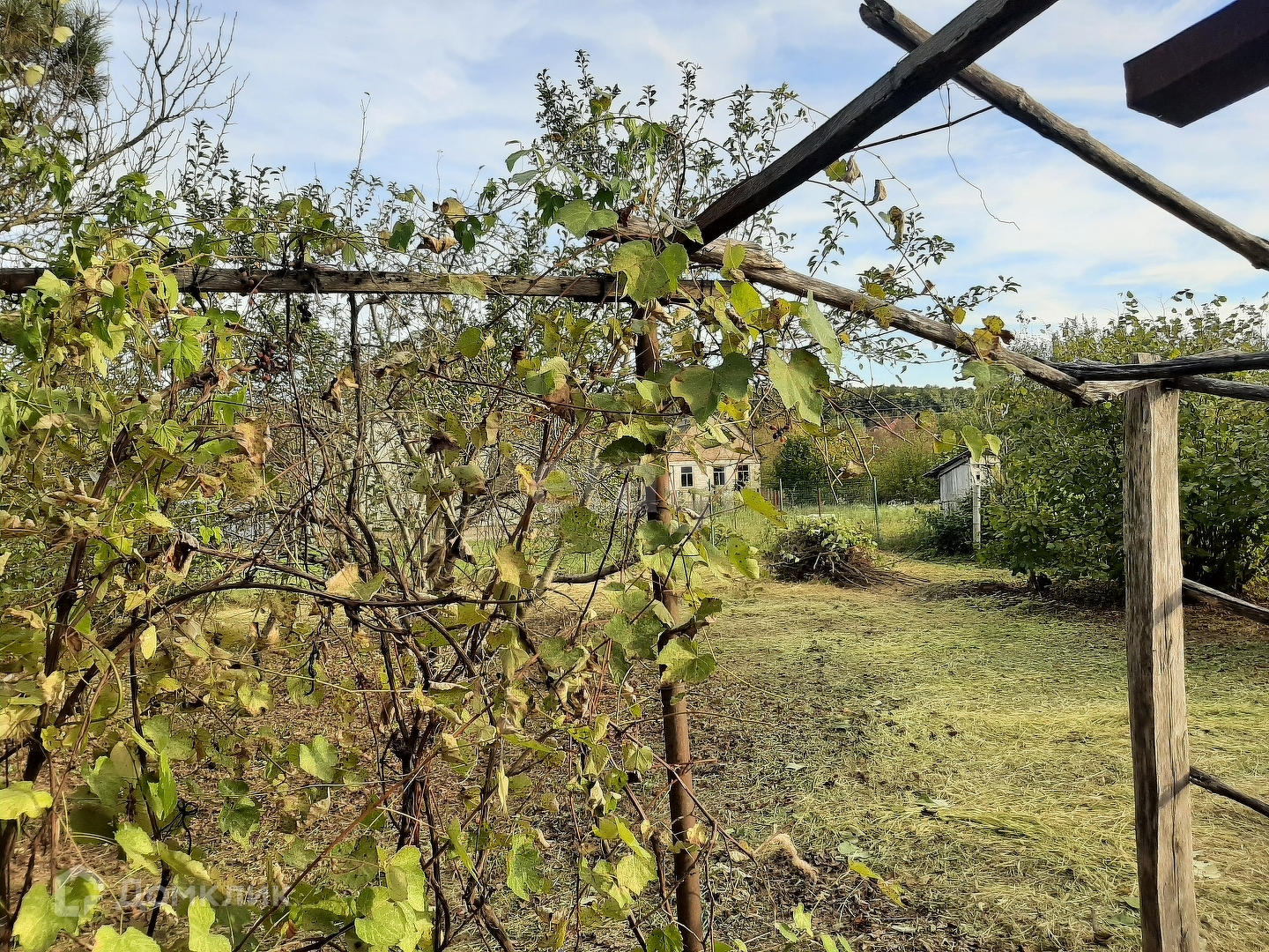 Земля разработана. На участке насажены плодовые деревья, виноград, орех фундук.Особый колорит для отдыха создает взрослая сосна, которая растет за дачным домиком.