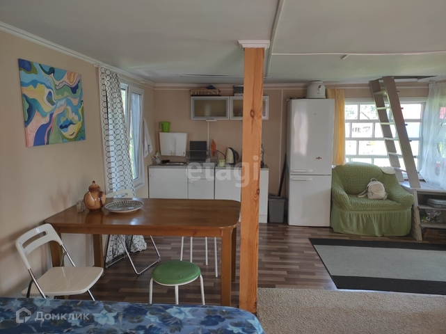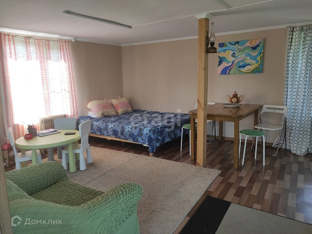 Дом из бруса 40 м2, сделан свежий ремонт, окна на первом этаже пластиковые.
