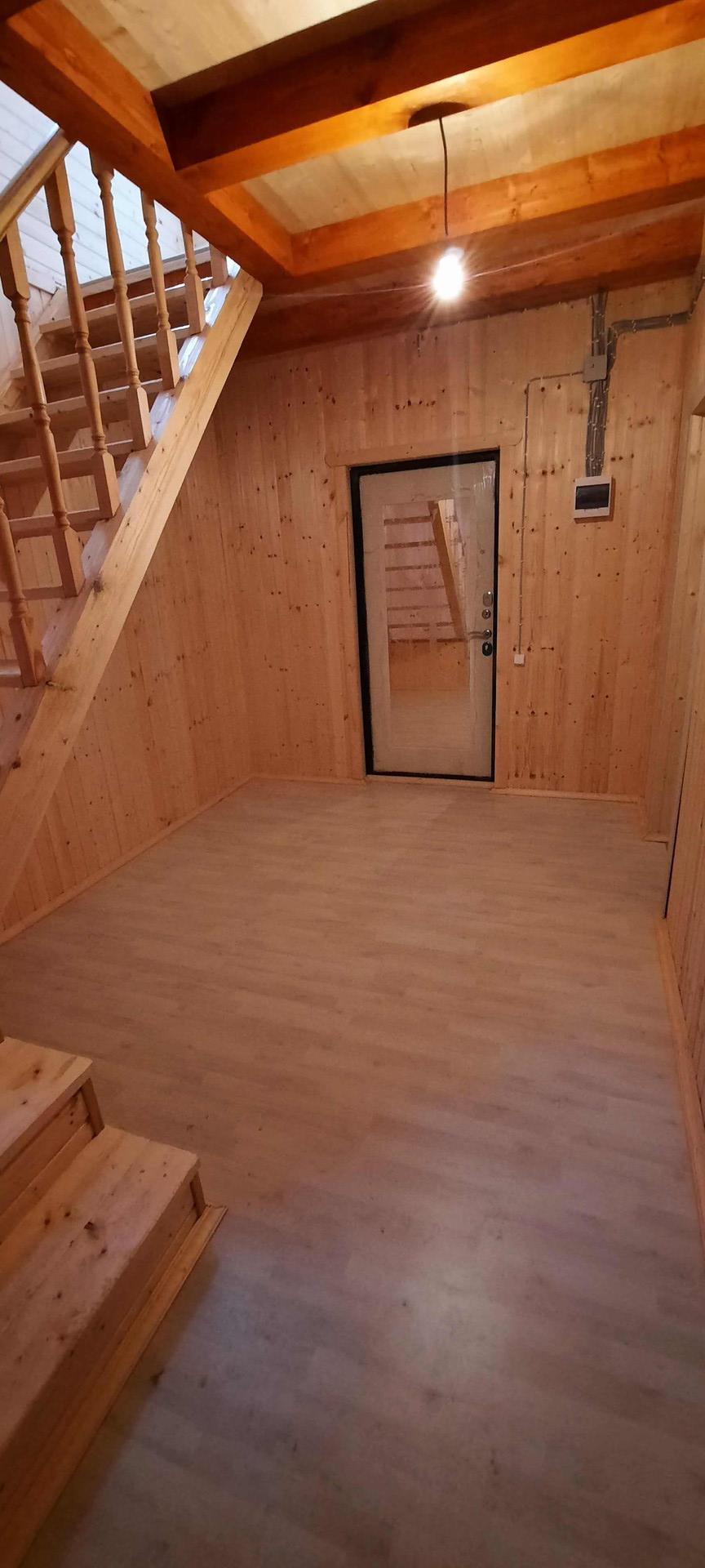 Двухэтажный дом из бруса с четырьмя спальнями( одна на 1 этаже и 3 на 2 этаже) с кухней-гостиной , с  санузлом( тёплый пол) На 2 этаже можно  сделать второй санузел при необходимости. Дом отапливается кассетным камином и электрическими конвекторами( в каждой комнате)