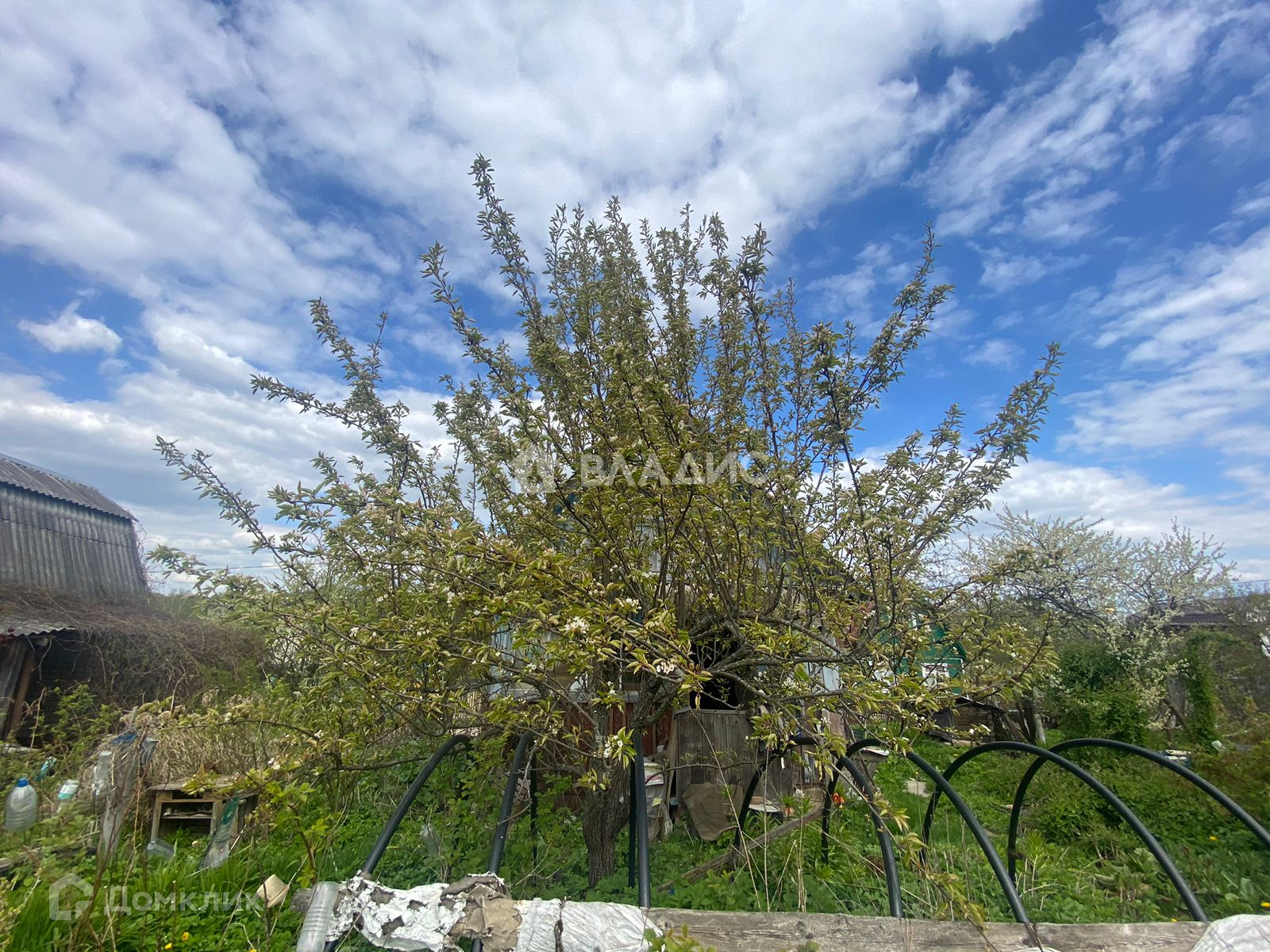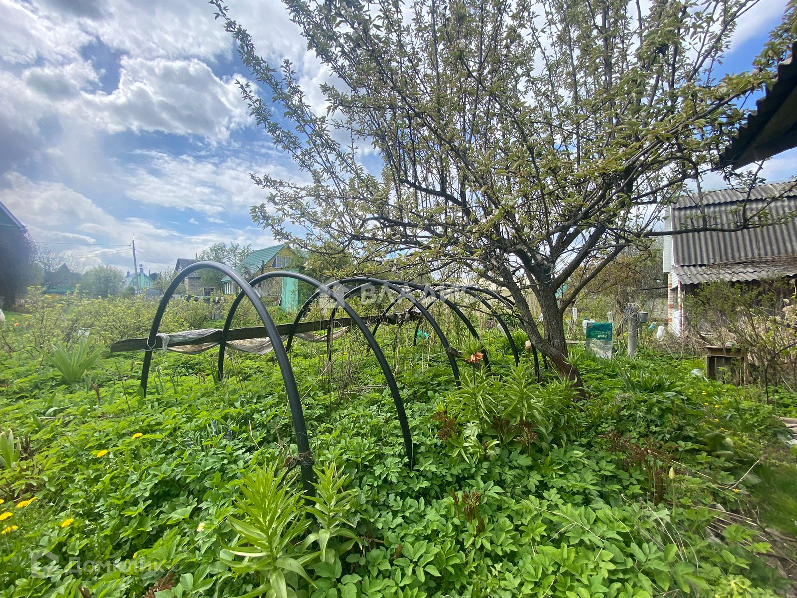 На участке есть яблони и кусты смородины и крыжовника, малины , круши , вишни .