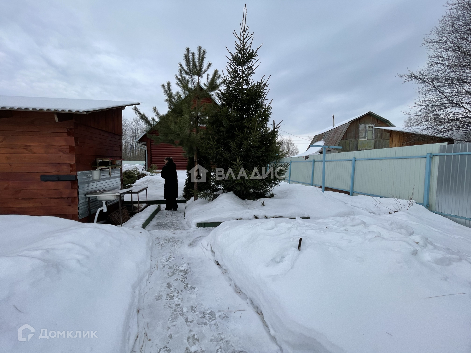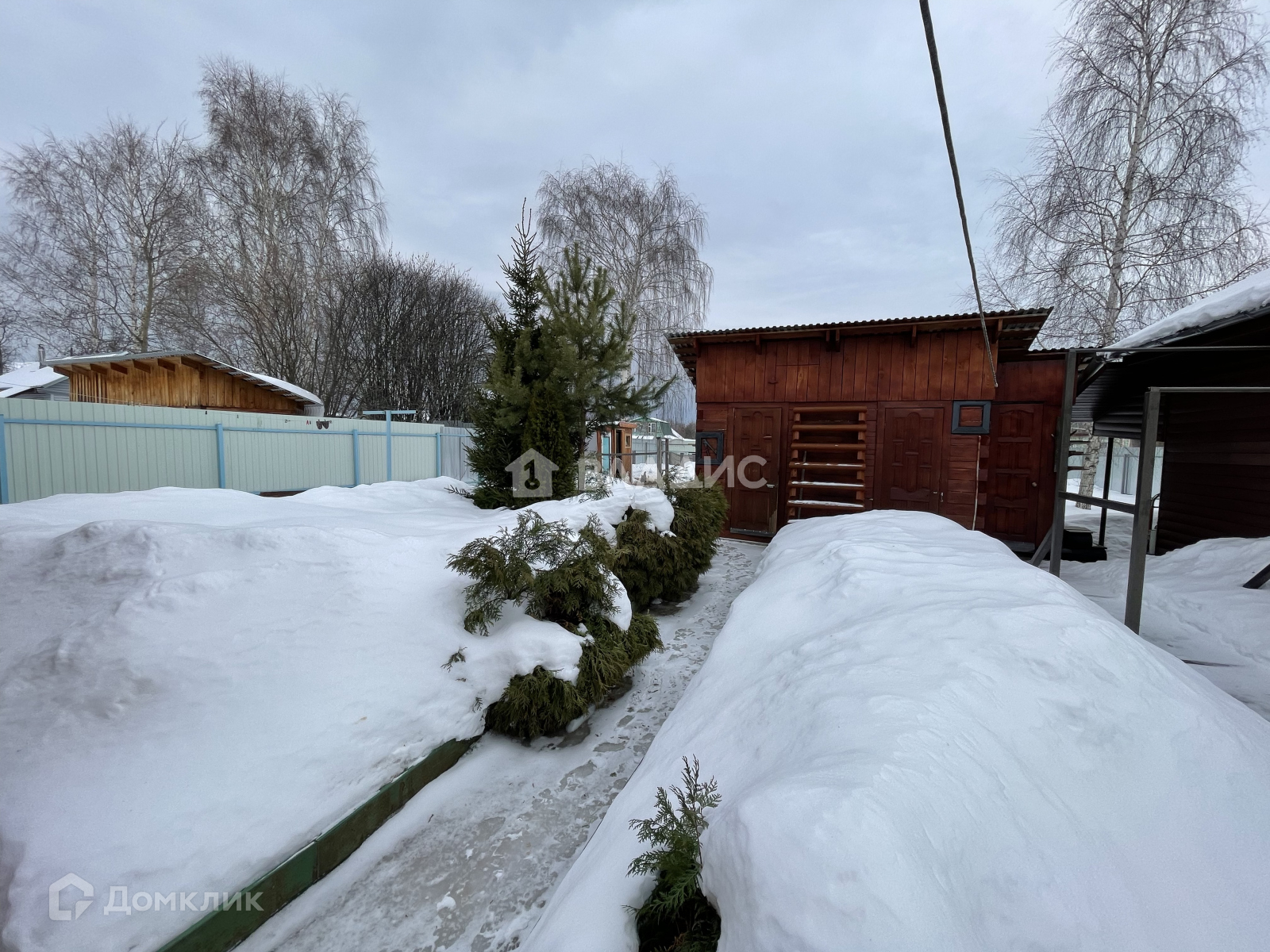 - Участок очень ухоженный, сделаны дорожки, растут ёлочки, и разные насаждения. Полностью. ограждён забором из профнастила.