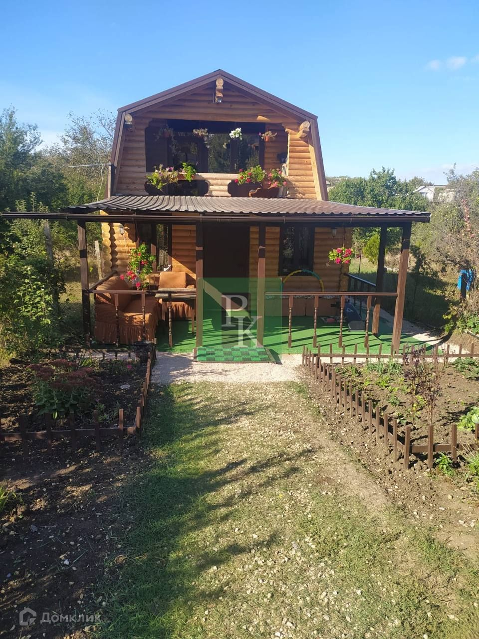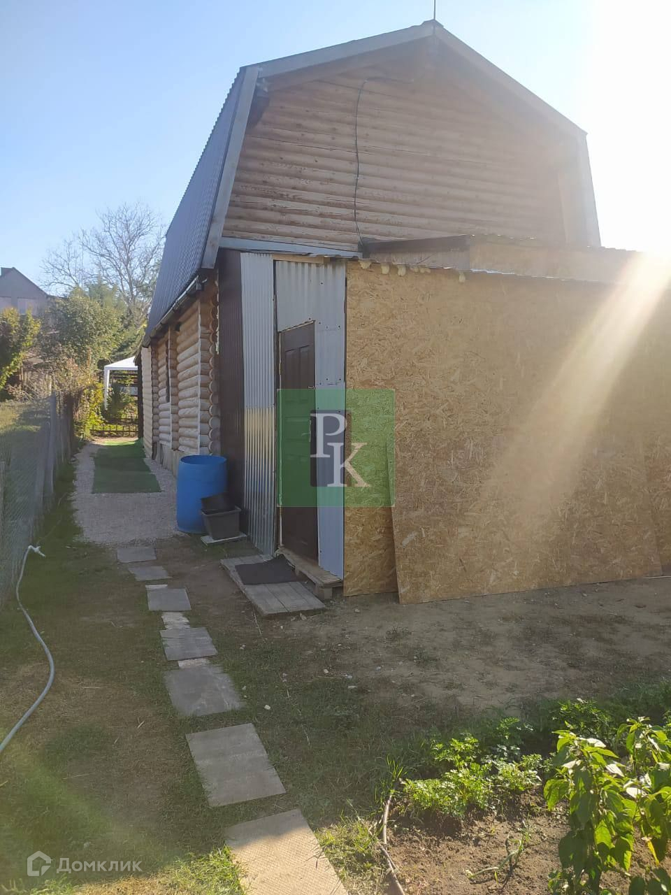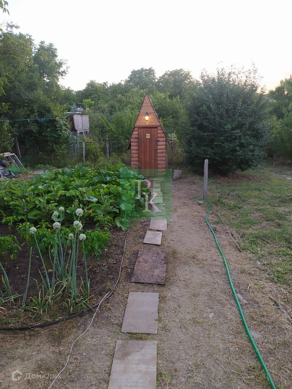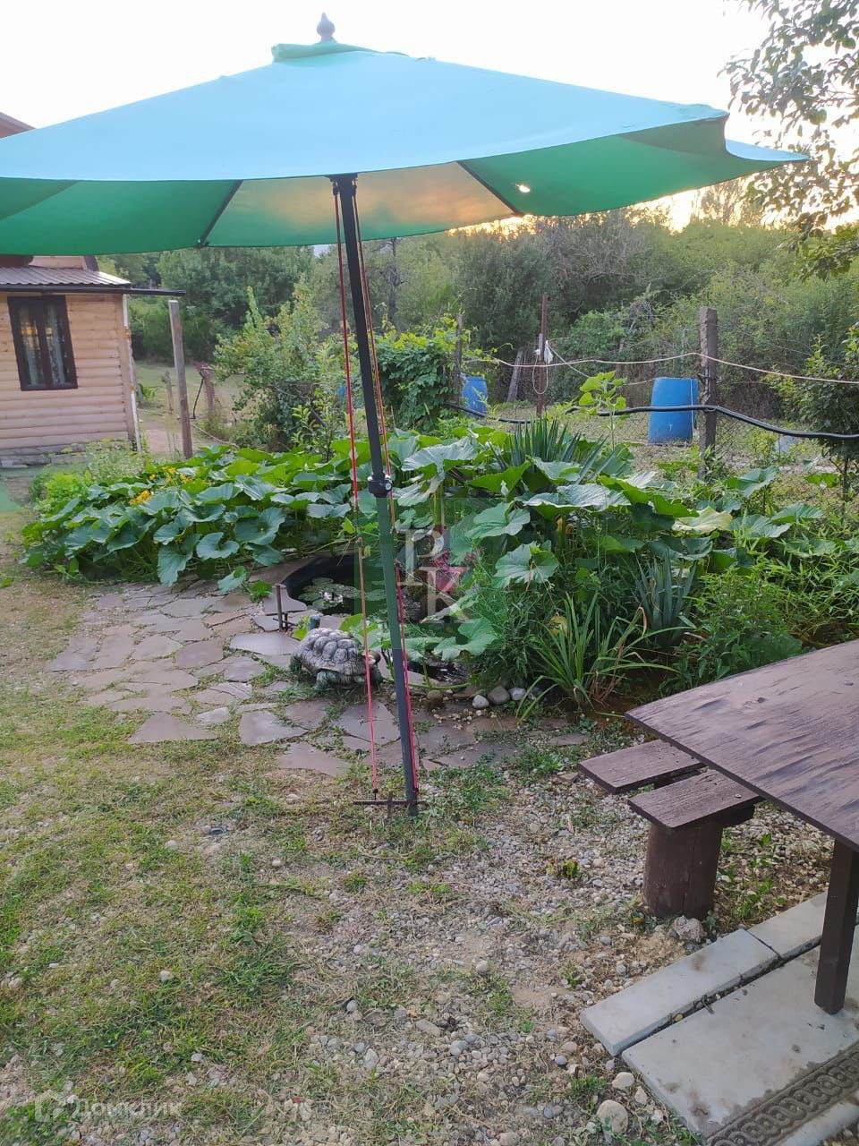 На участке свет, централизованная вода, есть две пластиковые ёмкости для питьевой воды на шесть кубов и на 600 л. Газ проведут через год. Парковка на три машины, на участке фруктовые деревья, посажены культурные растения, пруд с карпами, деревянные качели, курятник, тёплая будка для большой собаки, место для мангала.
